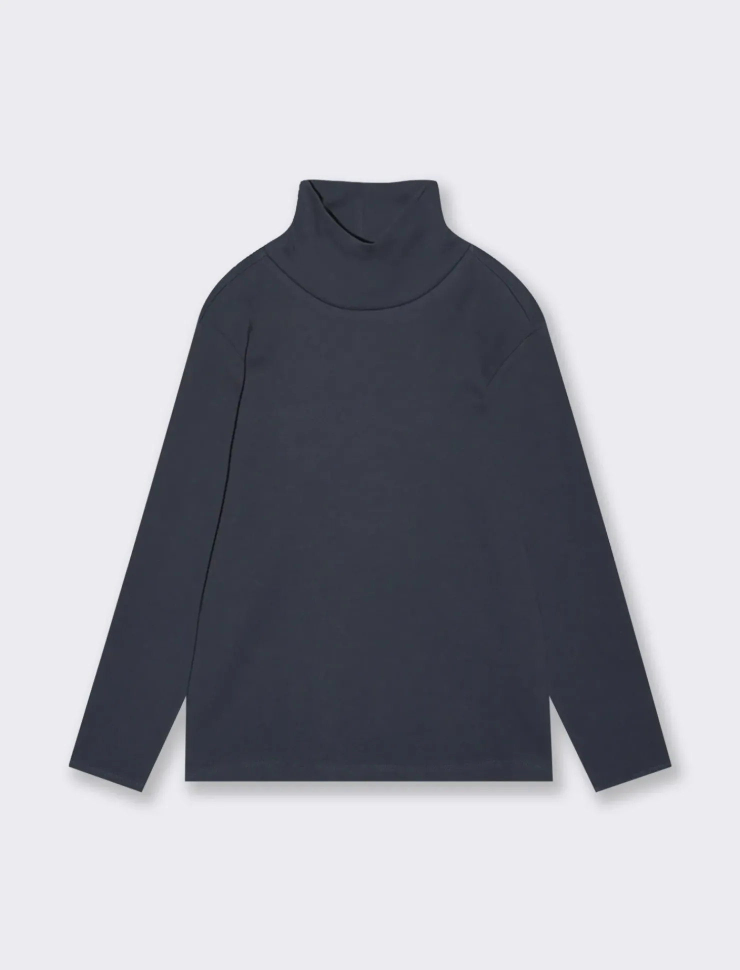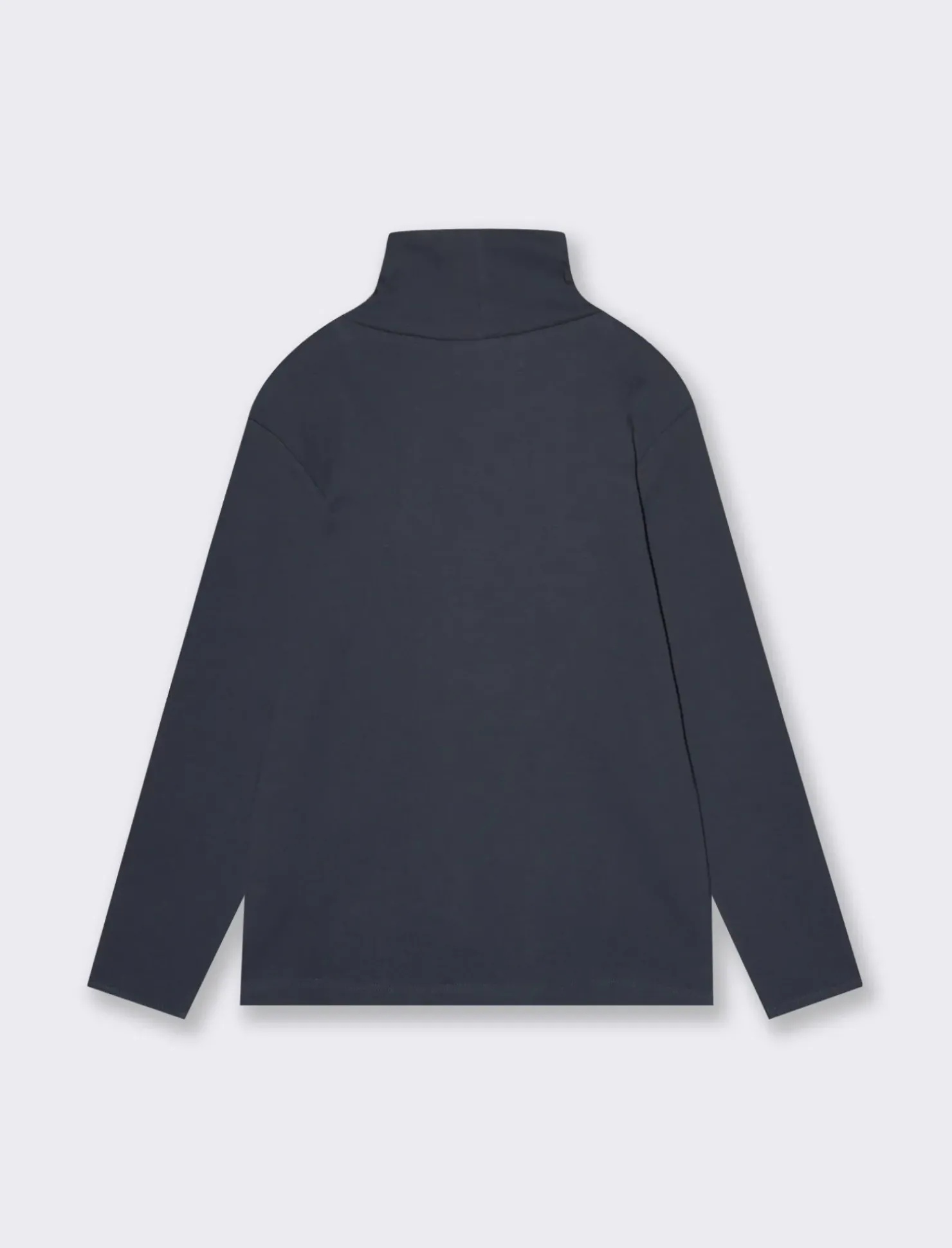 T-shirt da bambino modello collo alto in caldo cotone. Tinta unita e ricamo in tono. Ideale per le giornate più fredde. Il prodotto è di colore Blu