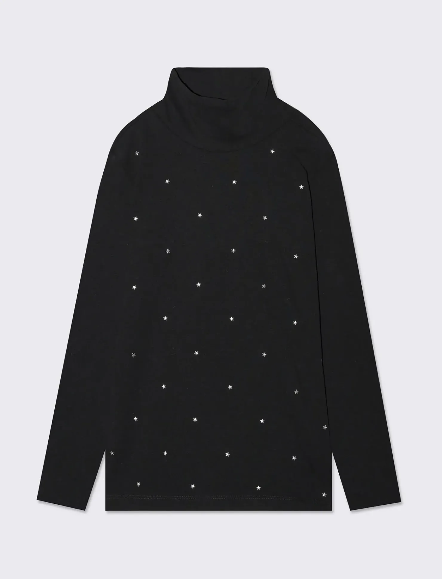 Piazza Italia T-shirt collo alto in cotone elasticizzato con borchie adesive – Nero Discount