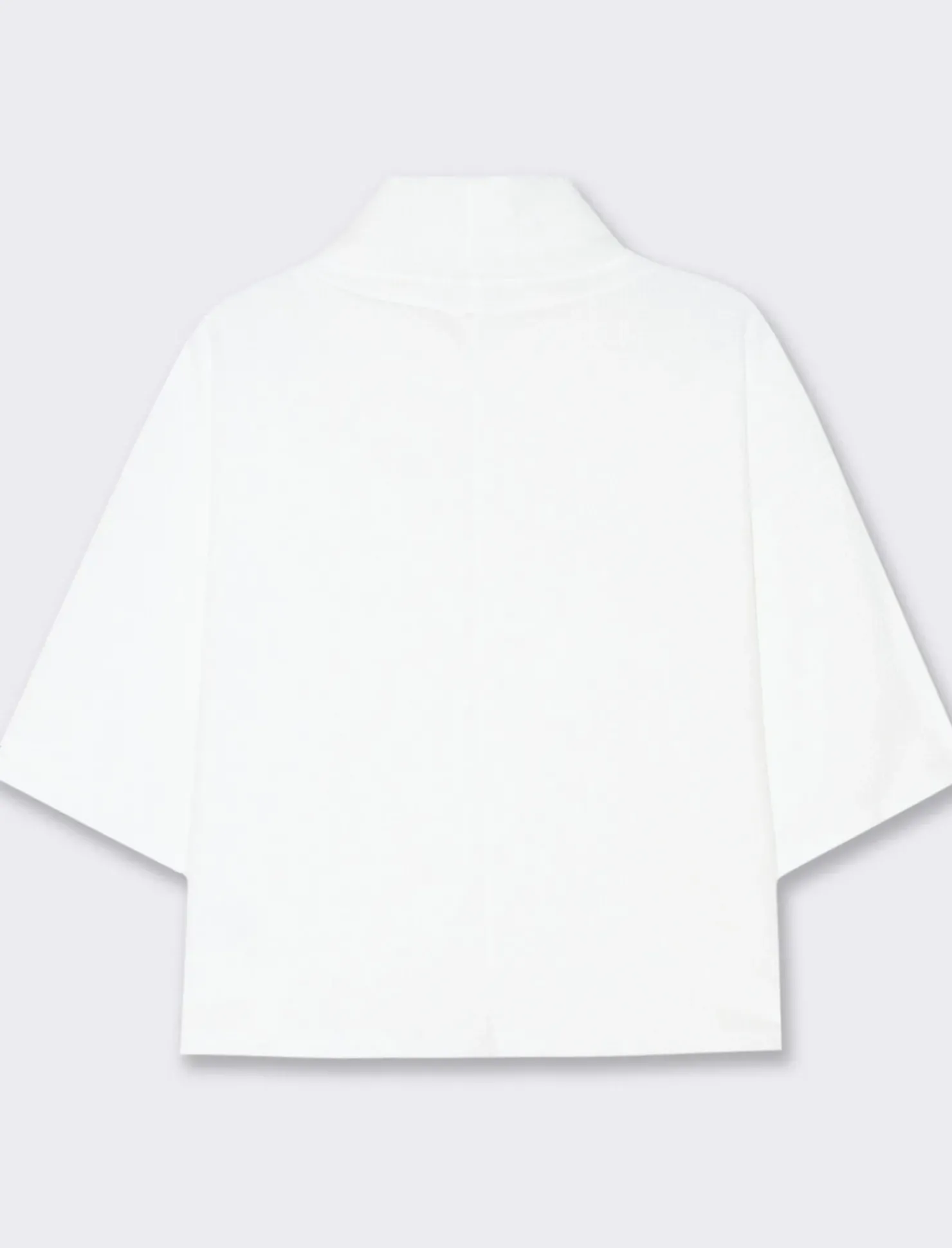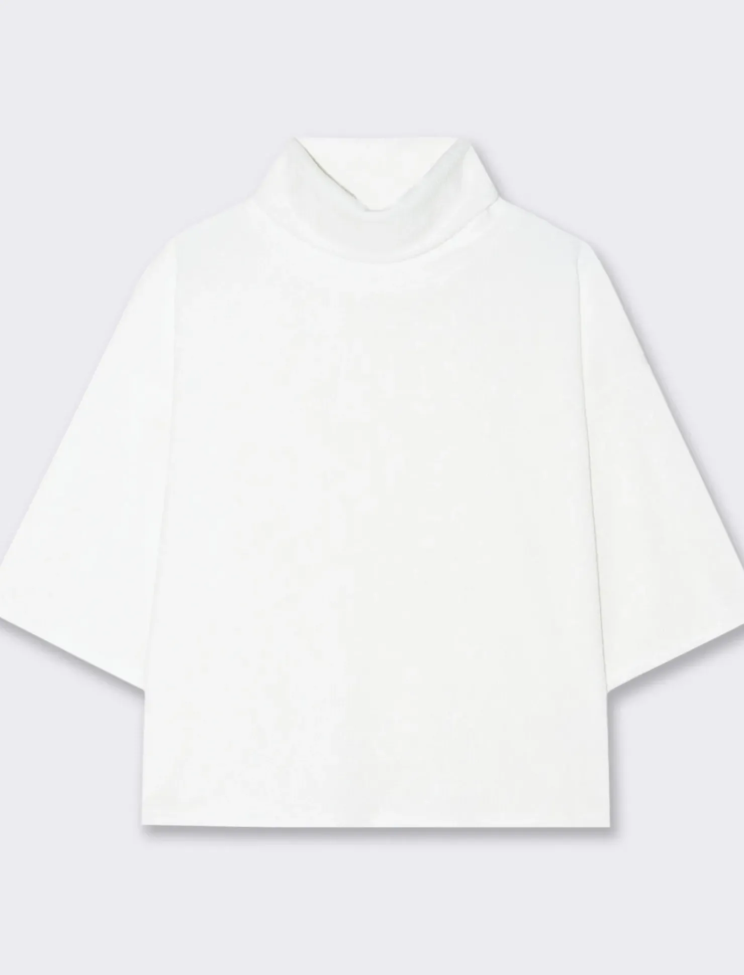 T-shirt a coste che combina eleganza e comfort. Questa maglia ha un design a coste, che le conferisce una texture interessante e un aspetto raffinato. Le maniche sono a 3/4, offrendo una copertura che è perfetta per le mezze stagioni, mentre il collo alto aggiunge un tocco di sofisticatezza e calore. à un capo versatile che può essere abbinato sia a look casual che più formali, ideale per chi cerca uno stile semplice ma chic. Il prodotto è di colore Bianco latte