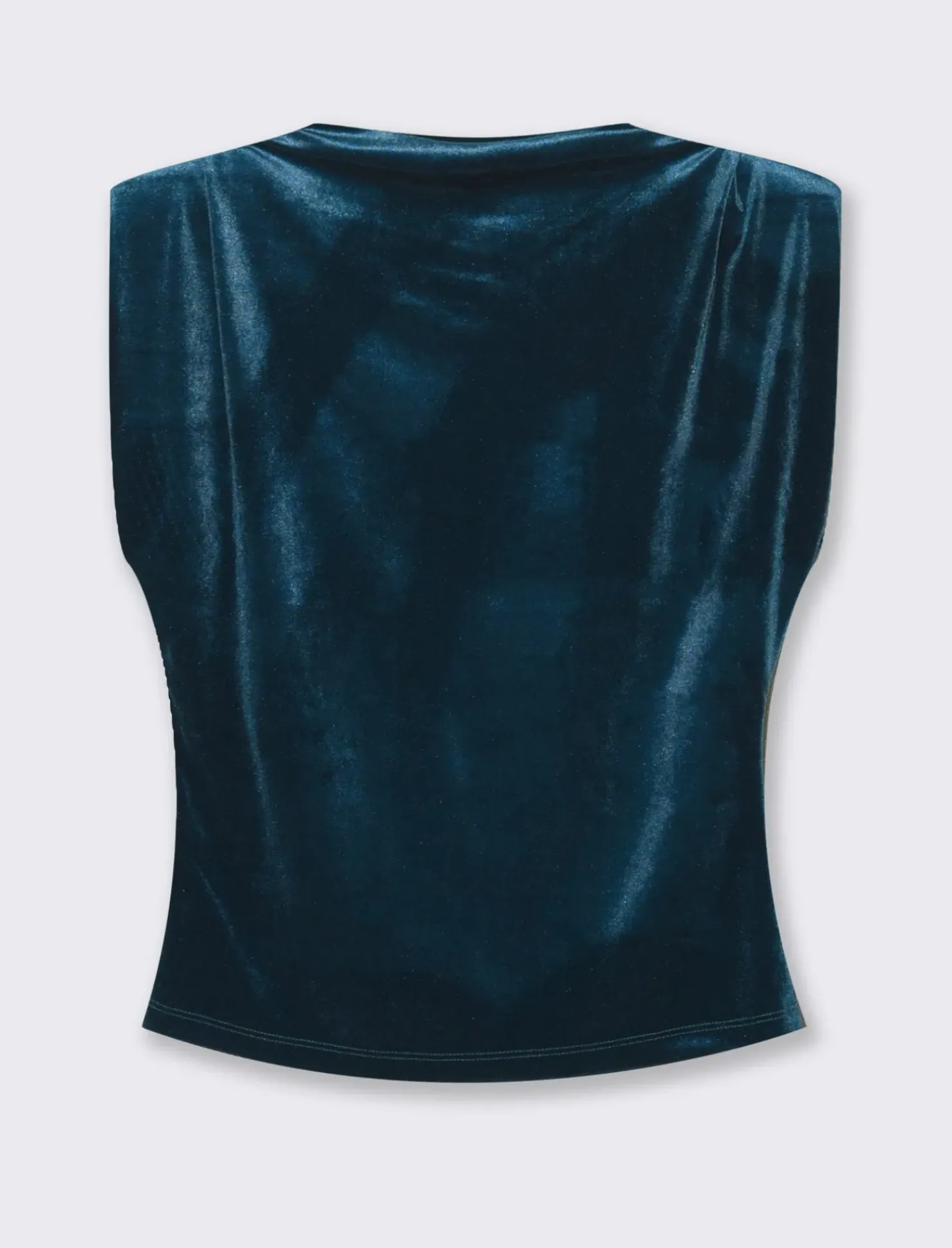 T-shirt raffinata e moderna, realizzata in velluto morbido e lussuoso. Le maniche ad aletta aggiungono un tocco di femminilità e leggerezza, creando un contrasto interessante con la texture ricca del velluto. Questo capo è perfetto per chi desidera un look elegante ma confortevole, ideale per occasioni speciali o per aggiungere un tocco di glamour al tuo outfit quotidiano. Il prodotto è di colore Ottanio