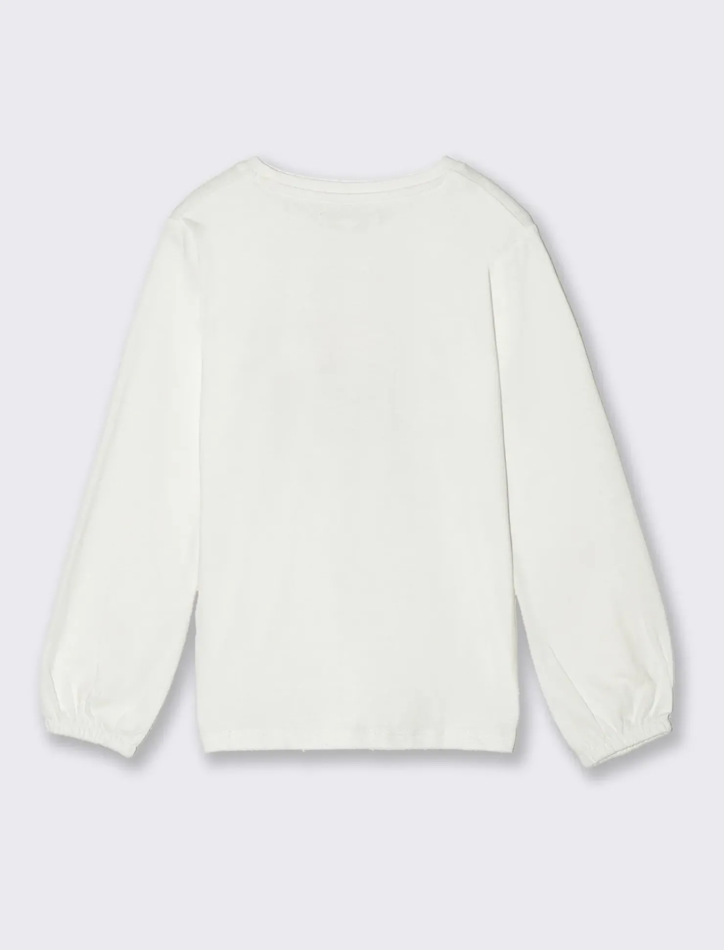 T-shirt girocollo da bambina maniche lunghe dalla vestibilità regolare; tessuto dalla mano calda e morbida con stampa e borchie Il prodotto è di colore Bianco sporco