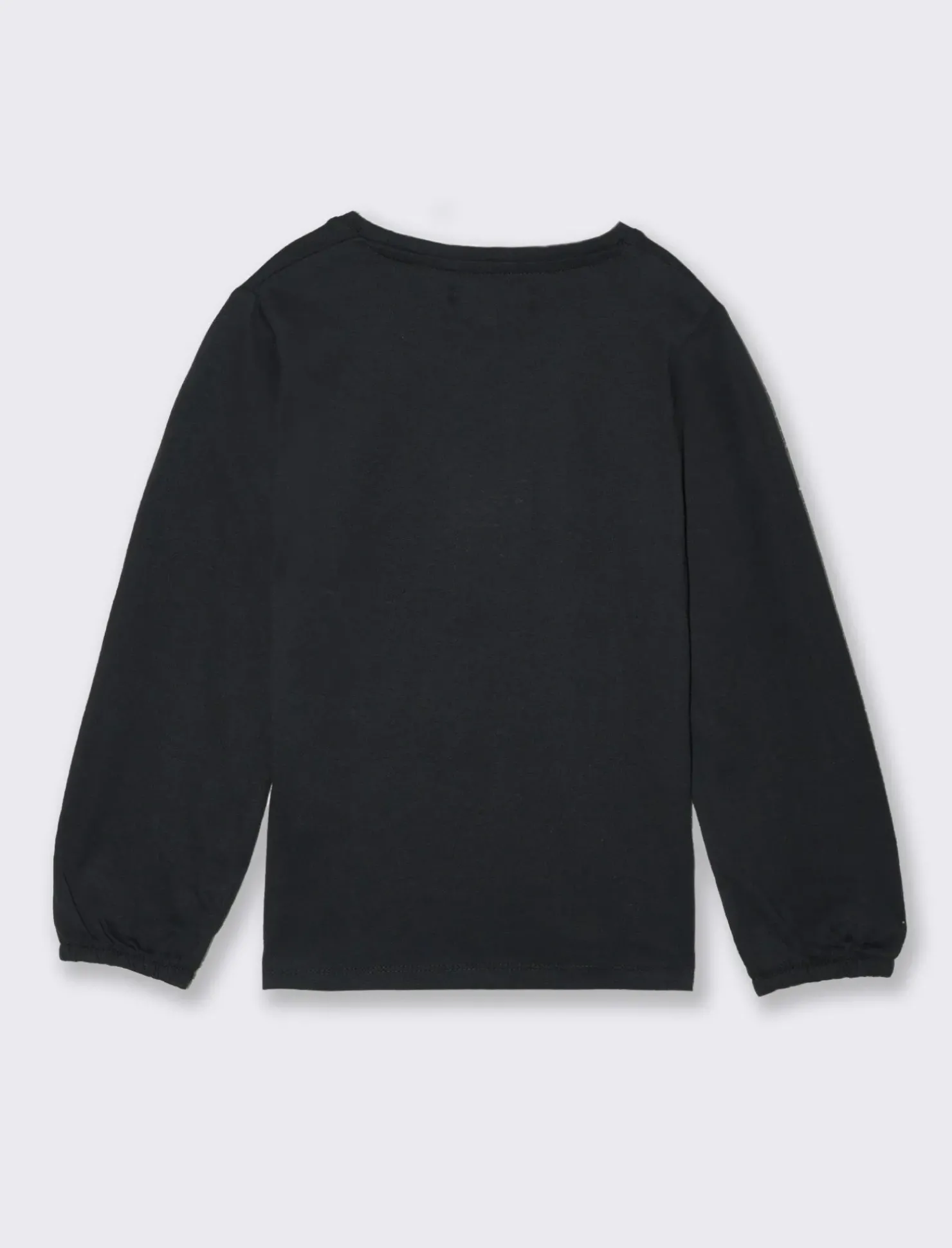 T-shirt girocollo da bambina maniche lunghe dalla vestibilità regolare; tessuto dalla mano calda e morbida con stampa e borchie Il prodotto è di colore Nero
