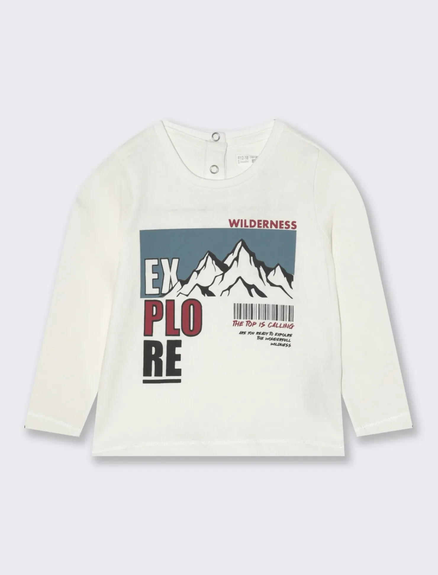 Piazza Italia T-shirt con stampa in jersey peach – Bianco sporco Clearance