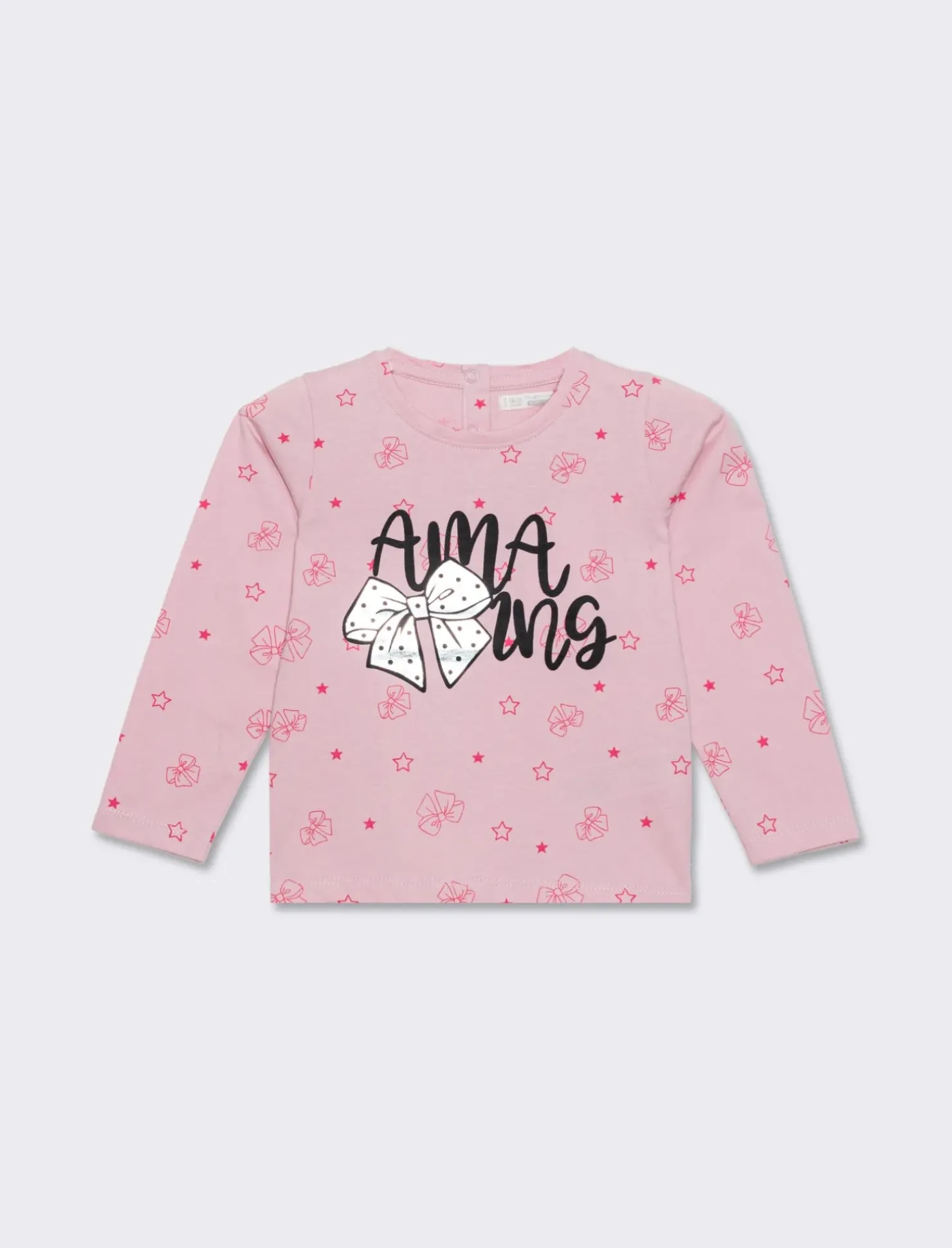 Piazza Italia T-shirt girocollo con stampa fantasia mylar sul davanti da neonata – Rosa Hot