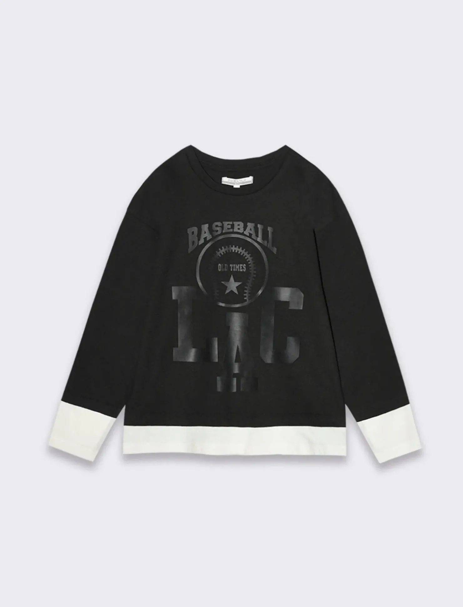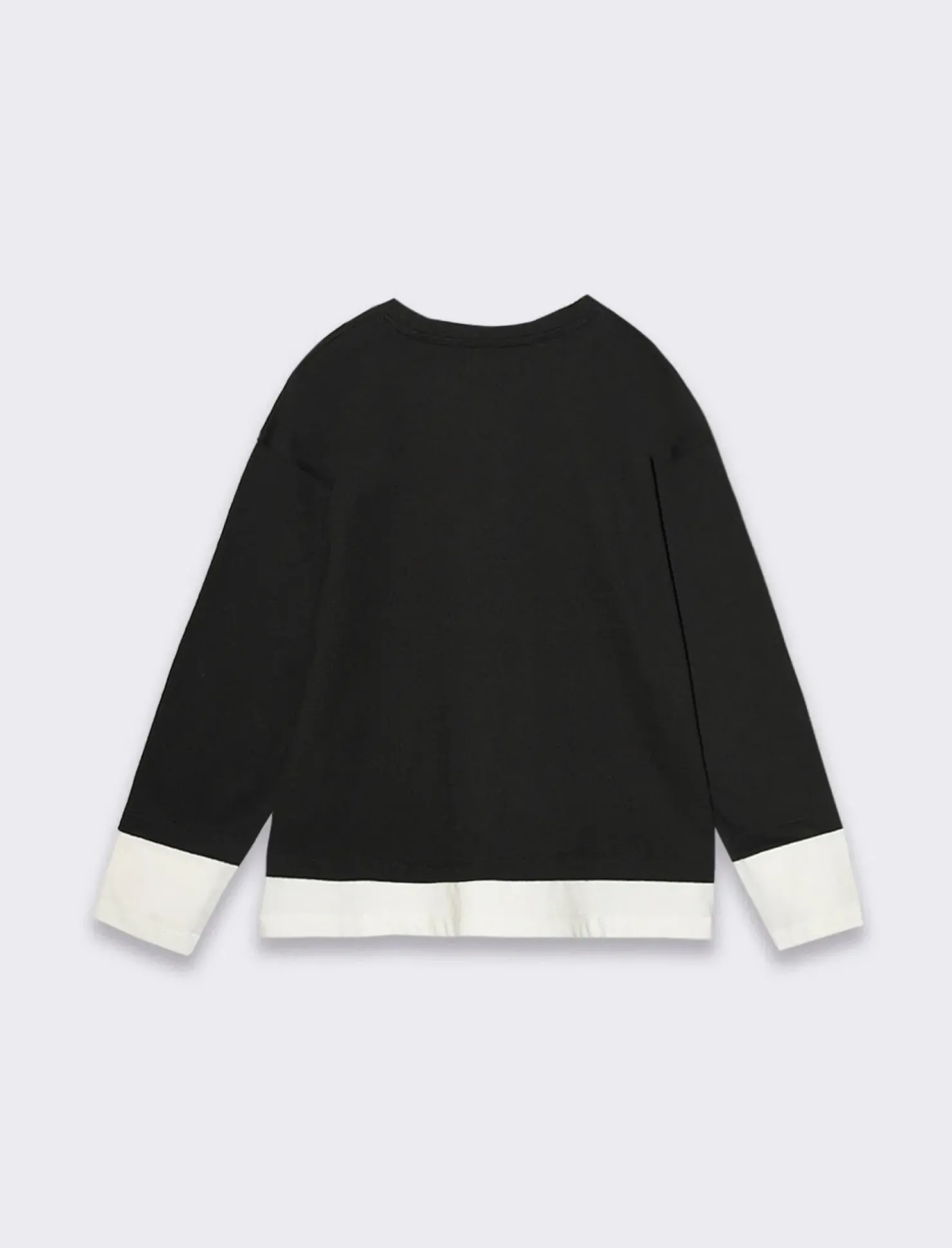 Piazza Italia T-shirt girocollo da bambino in caldo cotone con contrasto effetto finta – Nero Shop