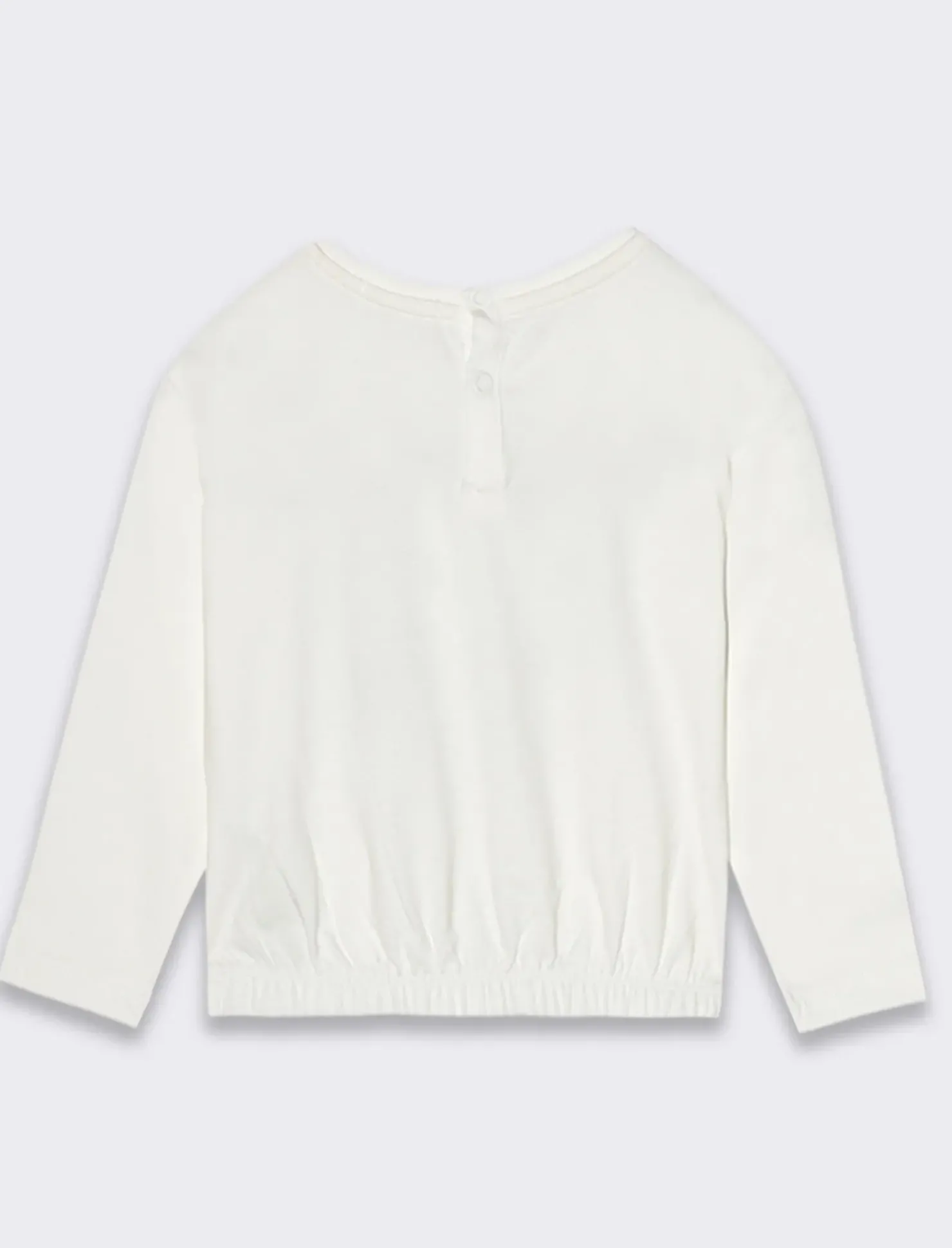 Piazza Italia T-shirt girocollo manica lunga, con stampa frontale fiocco ed arricciatura al fondo – Bianco panna Online
