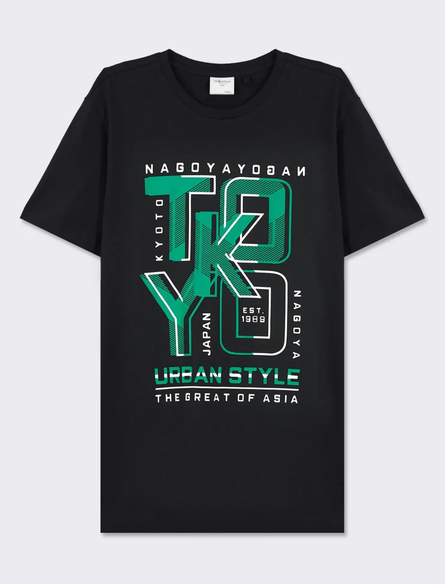Piazza Italia T-shirt girocollo maniche corte regular fit college inspiration – Nero Clearance