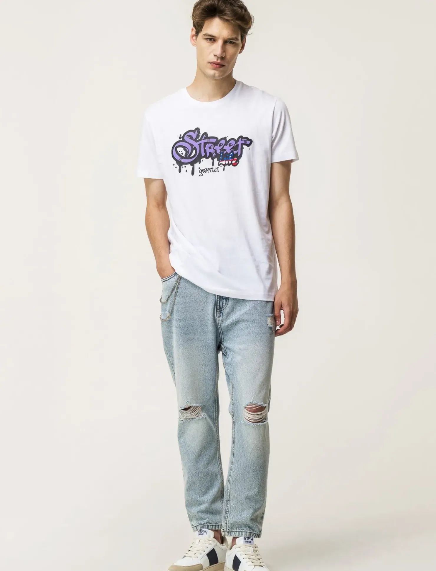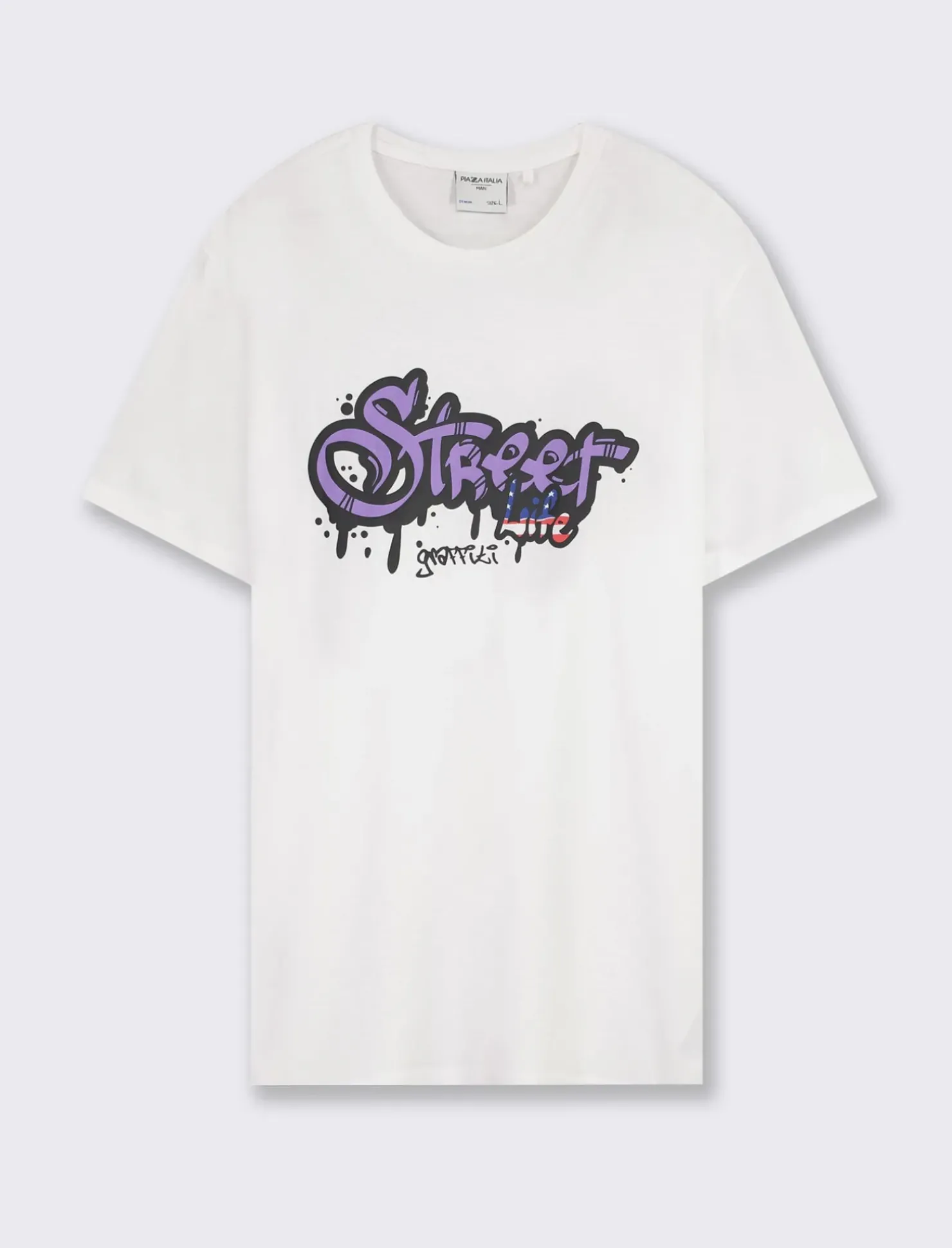 Piazza Italia T-shirt girocollo maniche corte regular fit con stampa graffiti USA Inspiration – Bianco Sale