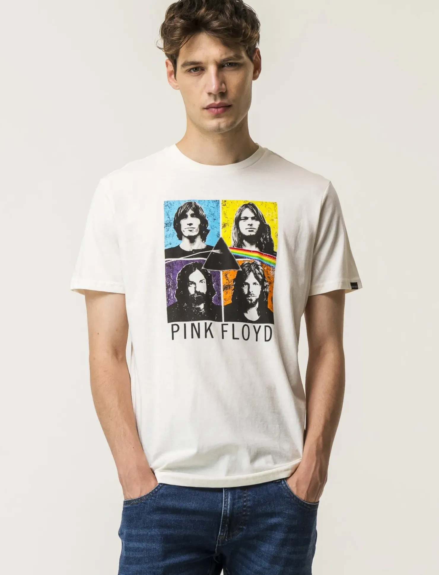 Piazza Italia T-shirt girocollo maniche corte regular fit con stampa PINKFLOYD License – sporco Bianco Outlet