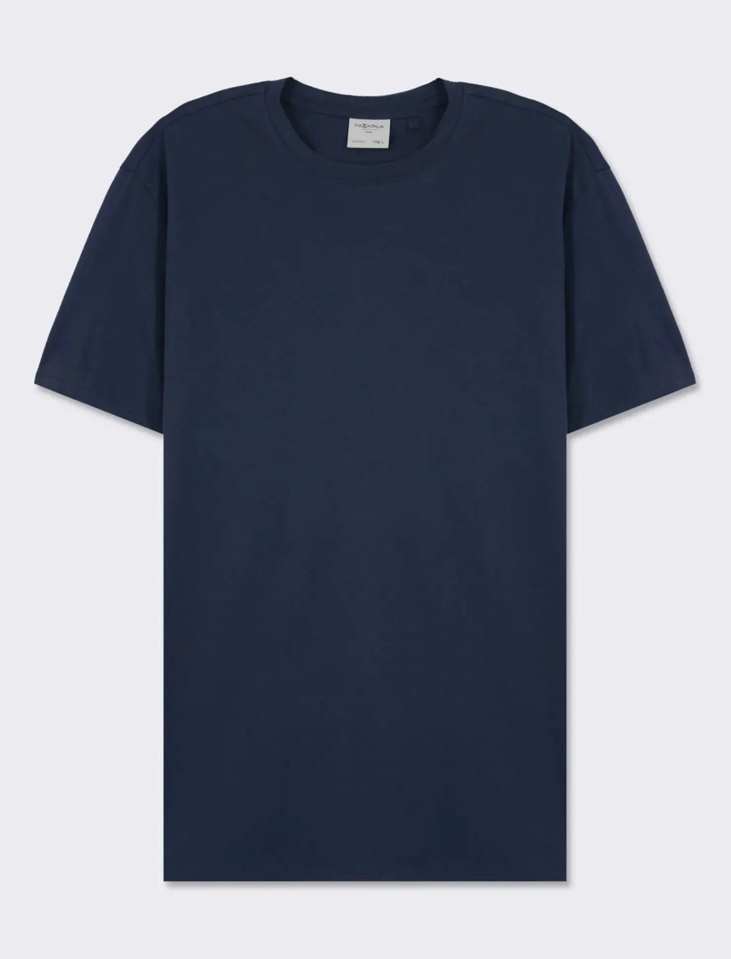 T-shirt basic in cotone premium regular fit. Ideale per un look casual e comodo, questa t-shirt girocollo con maniche corte è realizzata in morbido jersey di cotone di alta qualità. Disponibile in diverse tonalità, è un capo essenziale nel guardaroba di ogni uomo. Il prodotto è di colore Blu