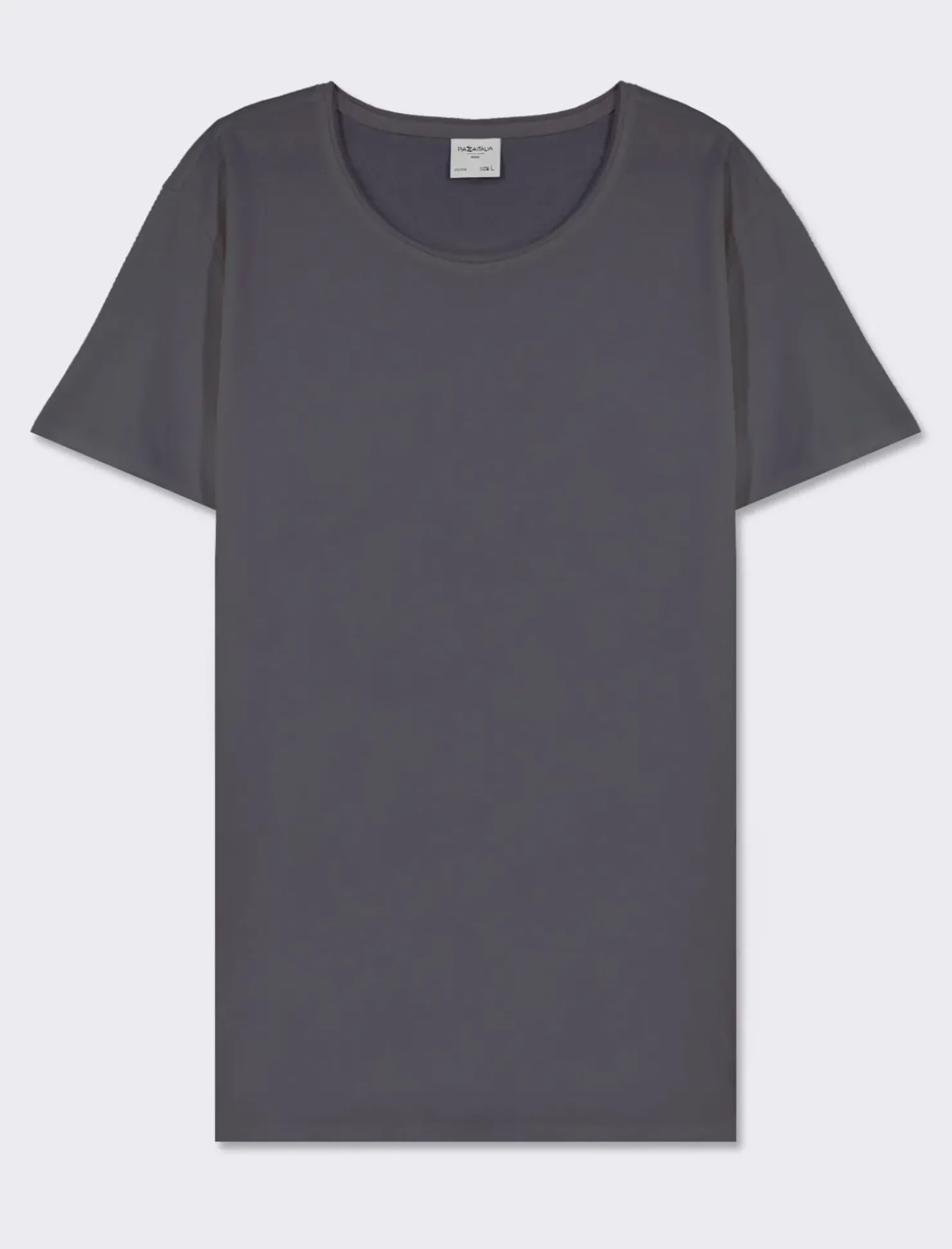 T-shirt girocollo in jersey di puro cotone, perfetta per un look casual e confortevole. Il taglio vivo degli orli conferisce un tocco di modernità e originalità. Ideale per un uomo che ama vestire con stile e praticità. Il prodotto è di colore Avion