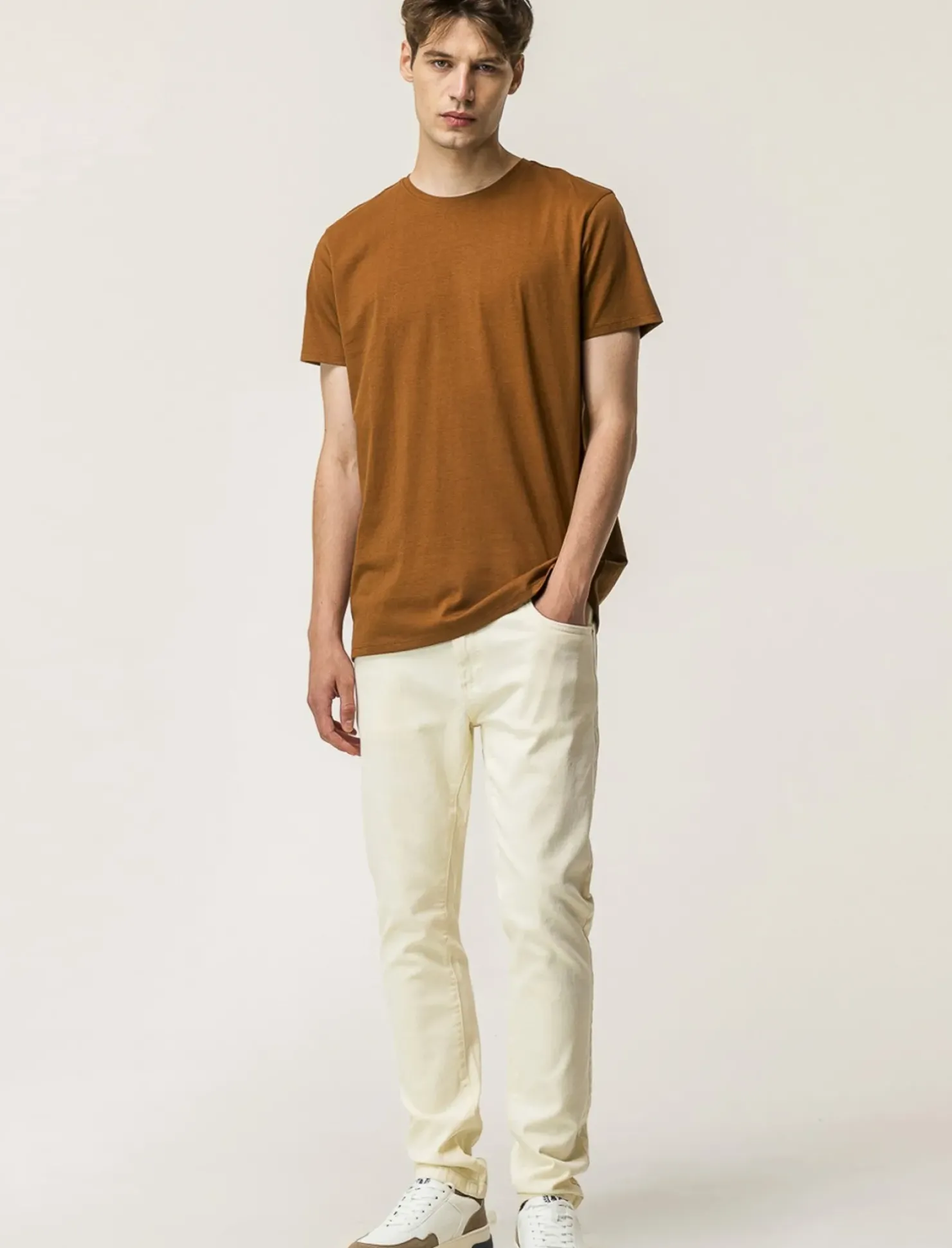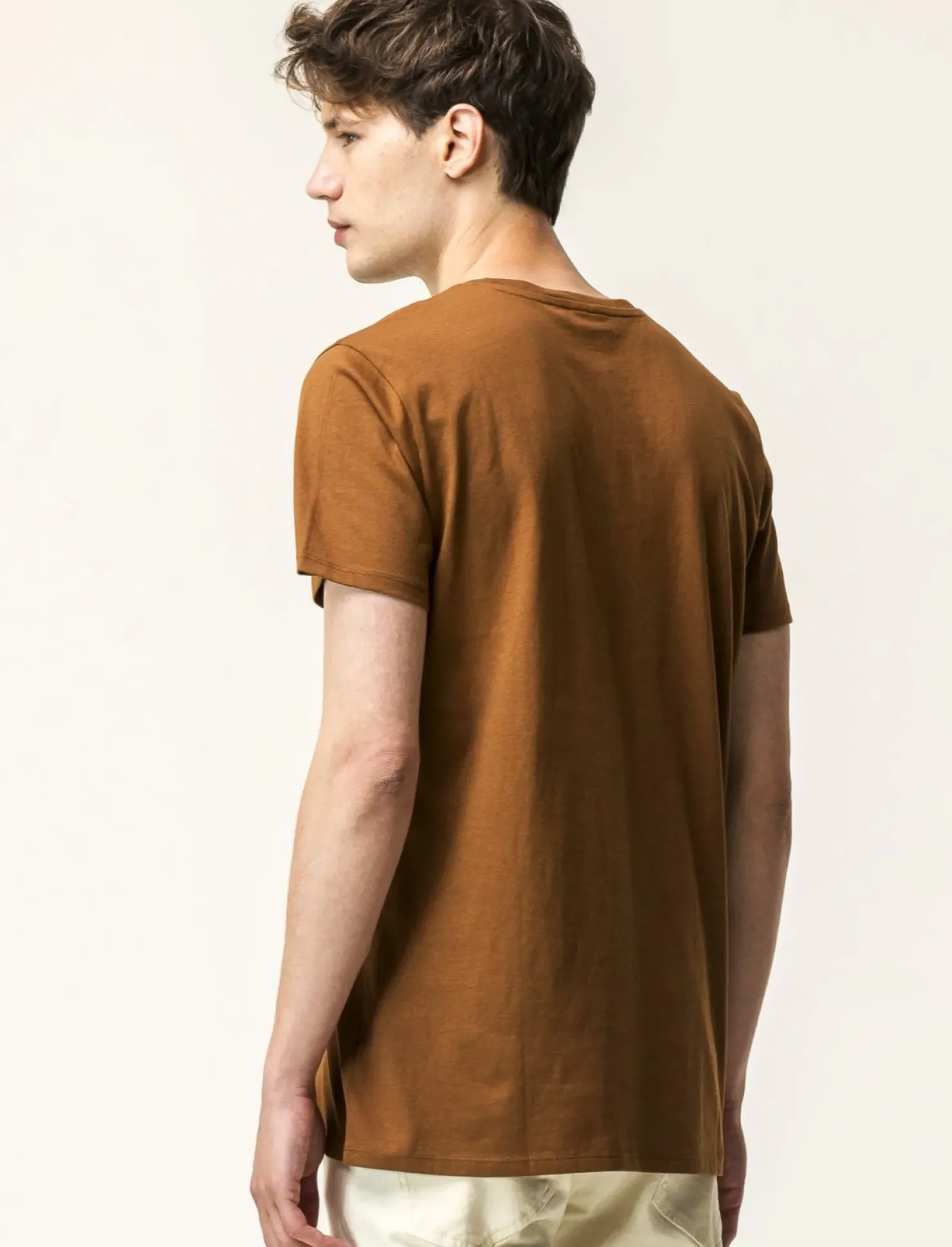 T-shirt basic in cotone regular fit per un look casual e comodo. Realizzata in jersey di puro cotone, questa t-shirt girocollo con maniche corte è un capo essenziale nel guardaroba di ogni uomo. Ideale da indossare in ogni occasione, dalla giornata in ufficio al weekend in relax. Un must-have per uno stile senza tempo. Il prodotto è di colore Marrone tabacco