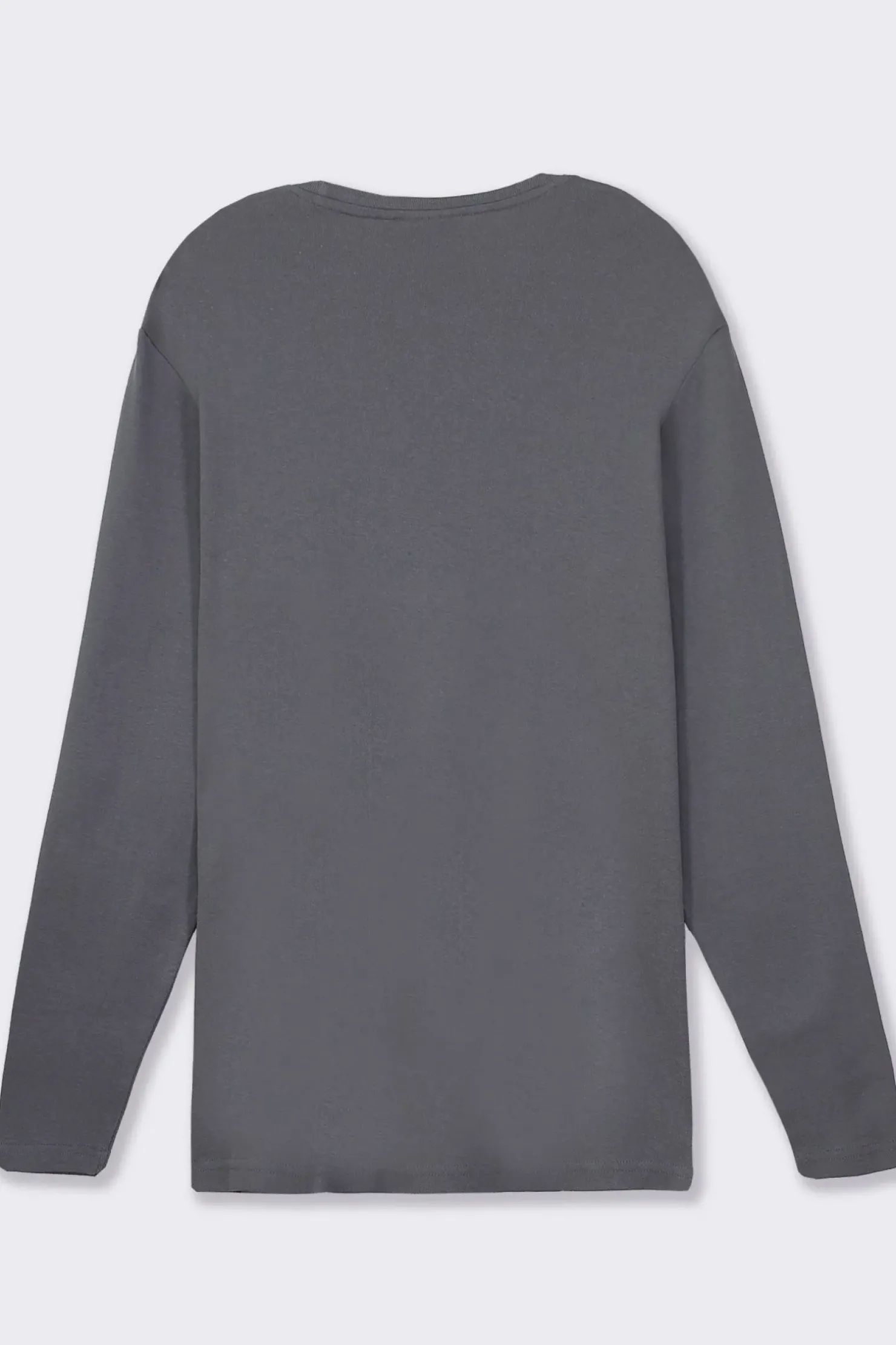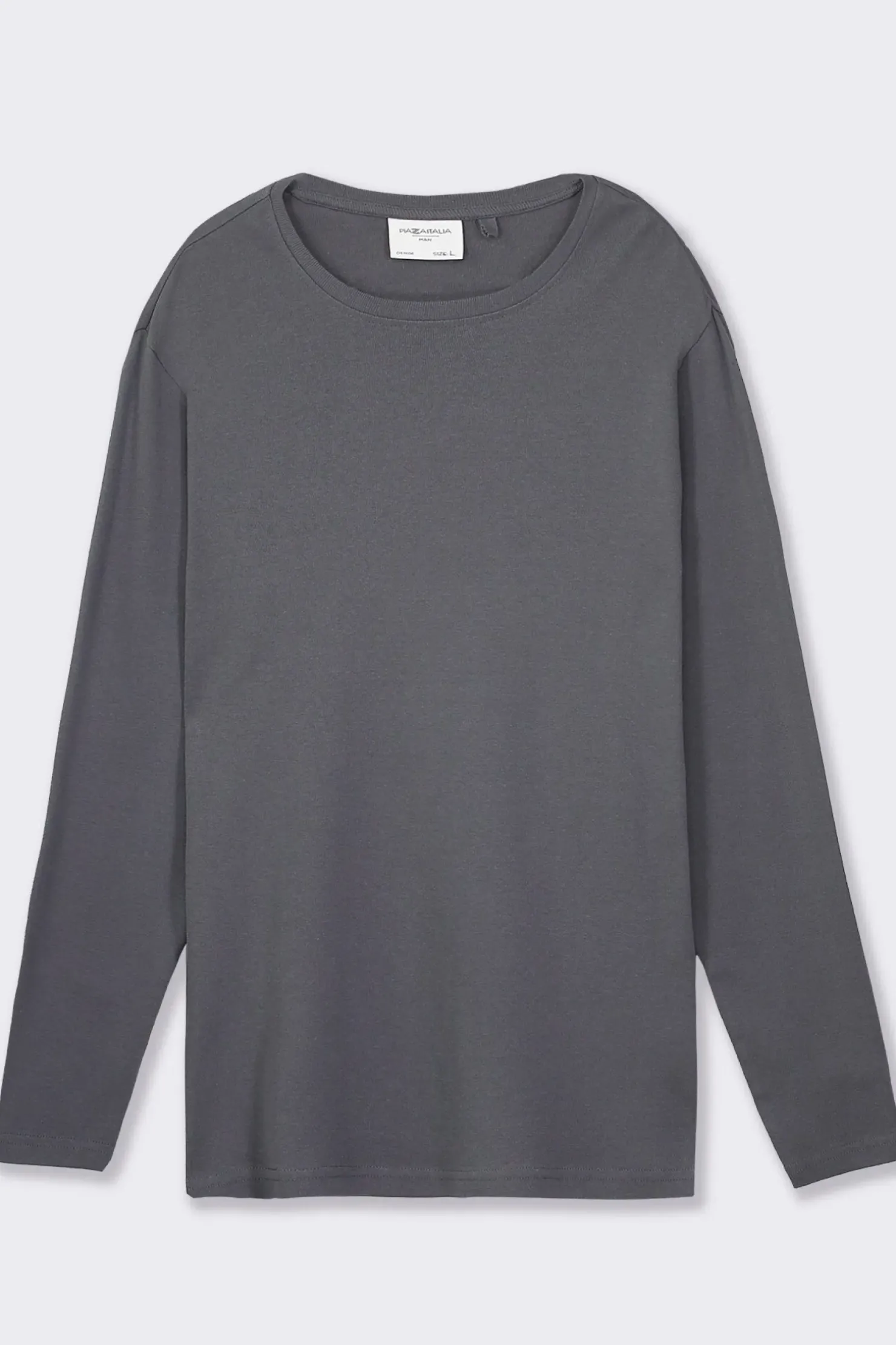 T-shirt basic a coste slim fit: un capo essenziale nel guardaroba di ogni uomo. Realizzata in morbido jersey di cotone, questa t-shirt girocollo con maniche lunghe si adatta perfettamente al corpo, garantendo comfort e stile in ogni occasione. Un must-have per un look casual e alla moda. Il prodotto è di colore Avion