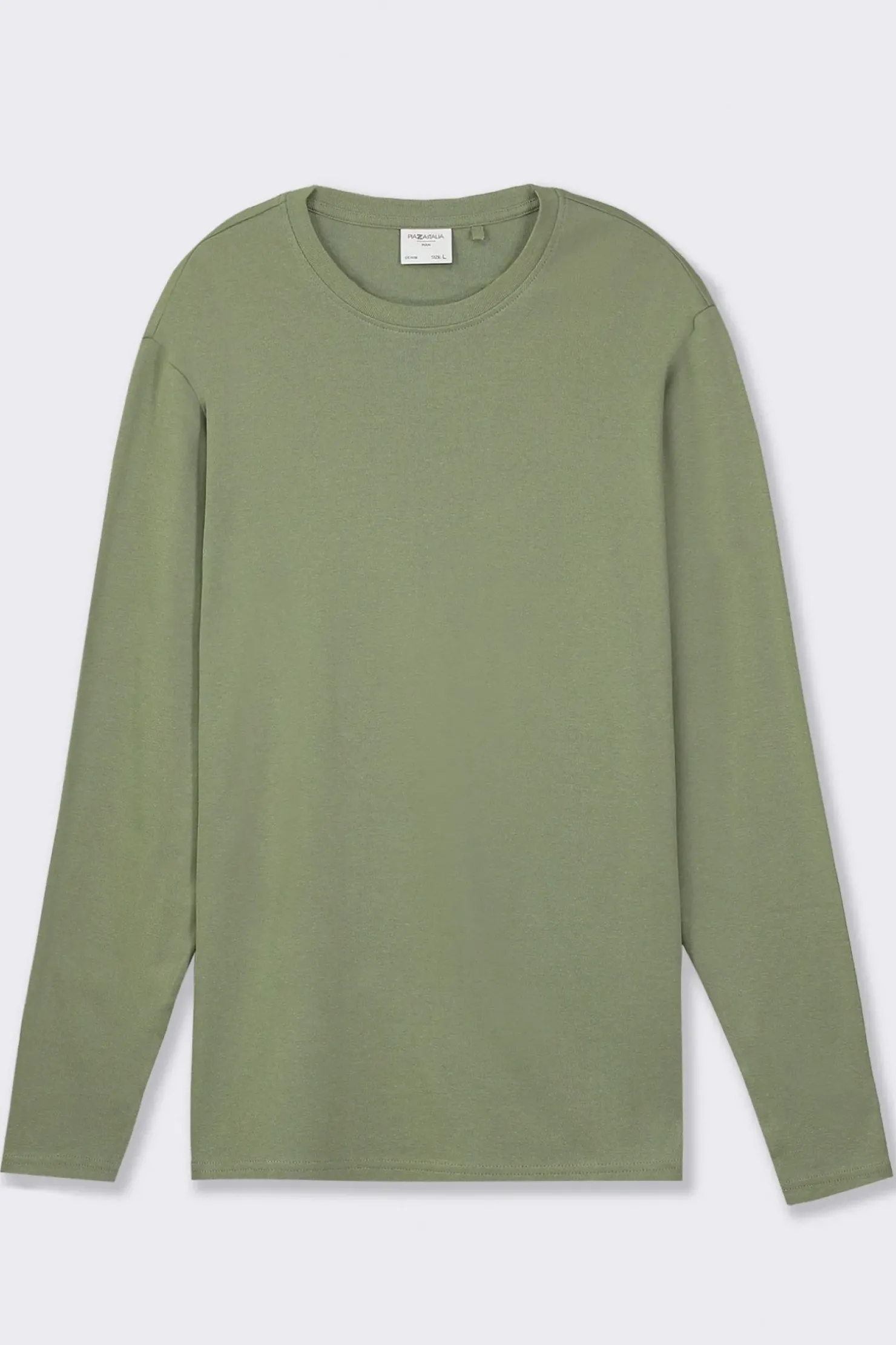 T-shirt basic a coste slim fit: un capo essenziale nel guardaroba di ogni uomo. Realizzata in morbido jersey di cotone, questa t-shirt girocollo con maniche lunghe si adatta perfettamente al corpo, garantendo comfort e stile in ogni occasione. Un must-have per un look casual e alla moda. Il prodotto è di colore Verde salvia