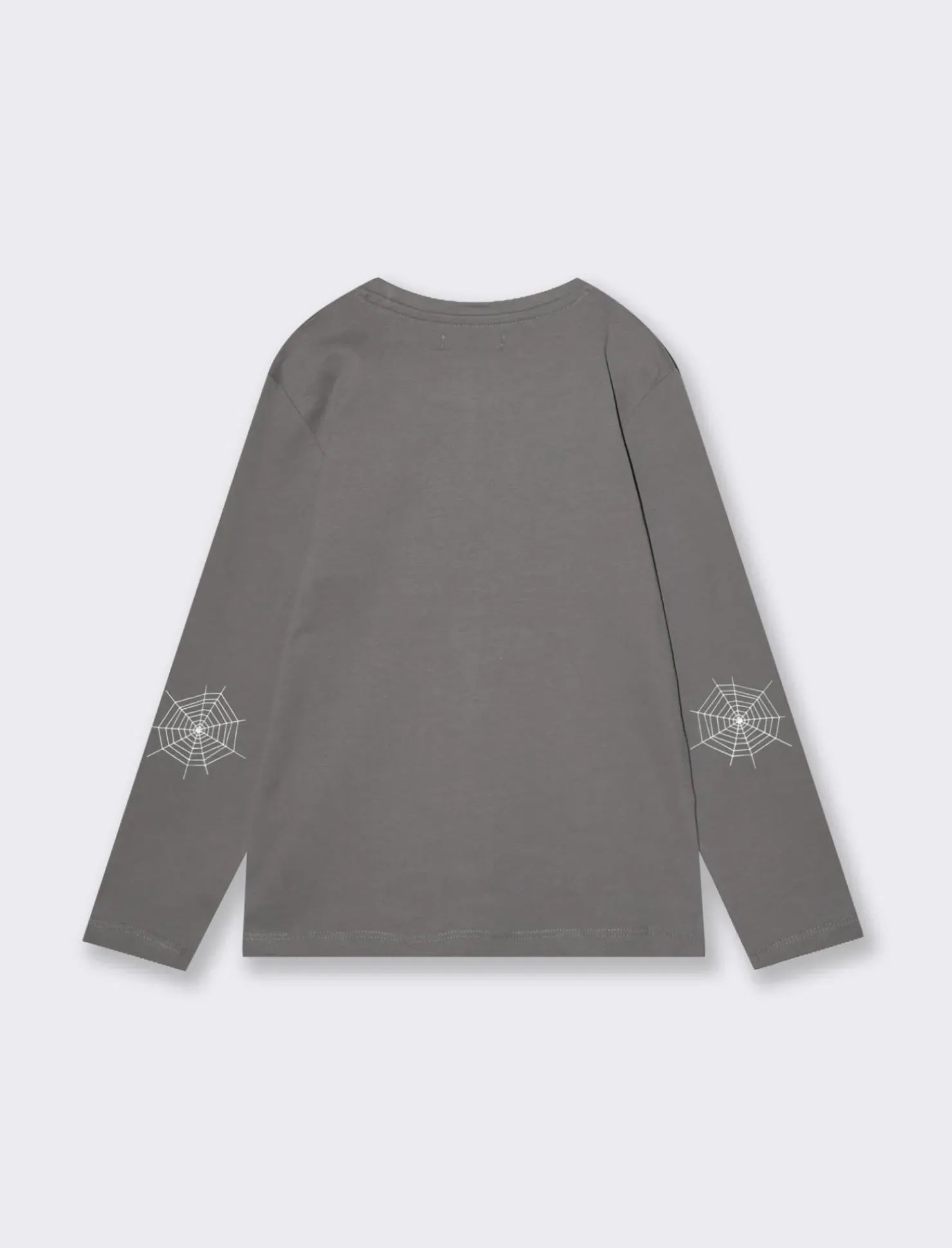 T.shirt da bambino manica lunga, modello girocollo. Stampa frontale halloween che si illumina al buio. Per un halloween strepitoso. Il prodotto è di colore Grigio antracite