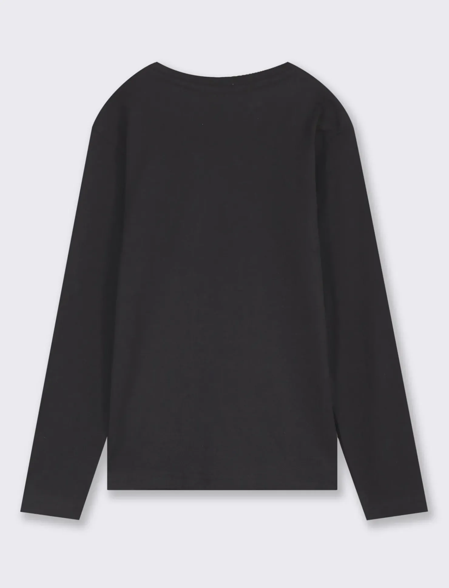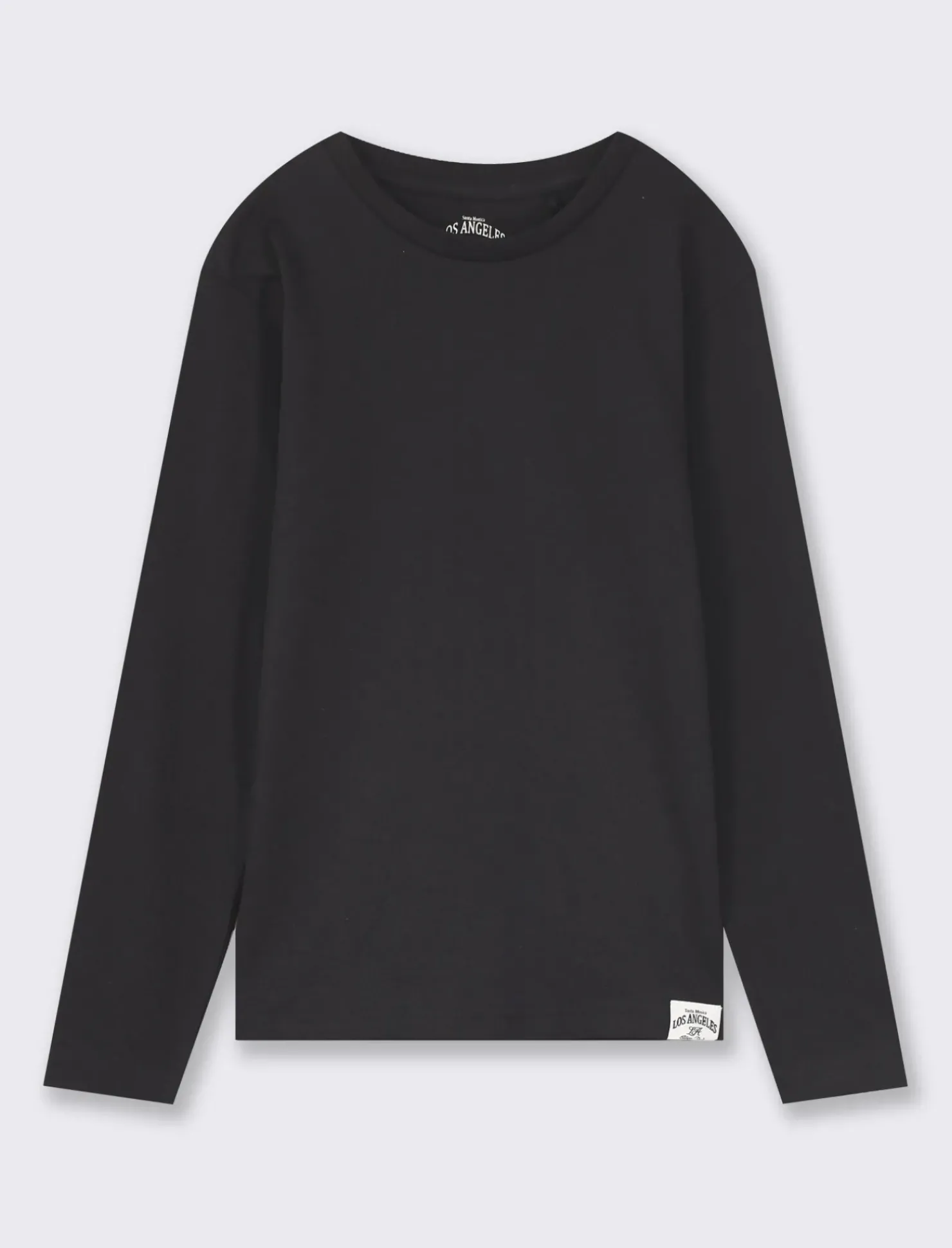 Piazza Italia T-shirt in cotone manica lunga in tinta unita da bambino – Nero Shop