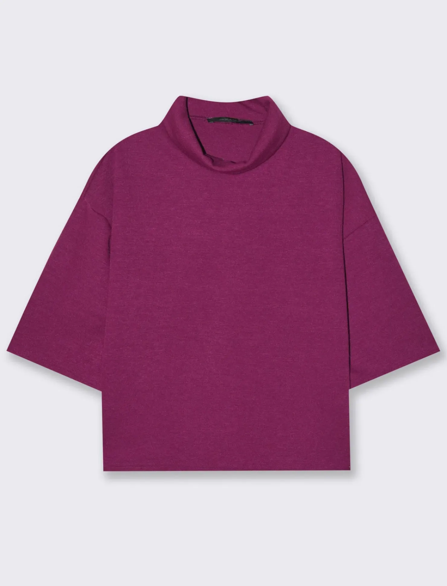 T-shirt in maglia a collo alto, perfetta per aggiungere un tocco di eleganza e calore al tuo guardaroba. Il collo alto offre protezione contro il freddo, mantenendoti comoda durante le giornate più fresche. La maglia è realizzata in un tessuto morbido e avvolgente, che si adatta delicatamente alla tua figura senza stringere. Questo capo è ideale per creare look sia casual che più formali, abbinandolo a pantaloni eleganti o a una gonna per un outfit sofisticato. Il prodotto è di colore Magenta