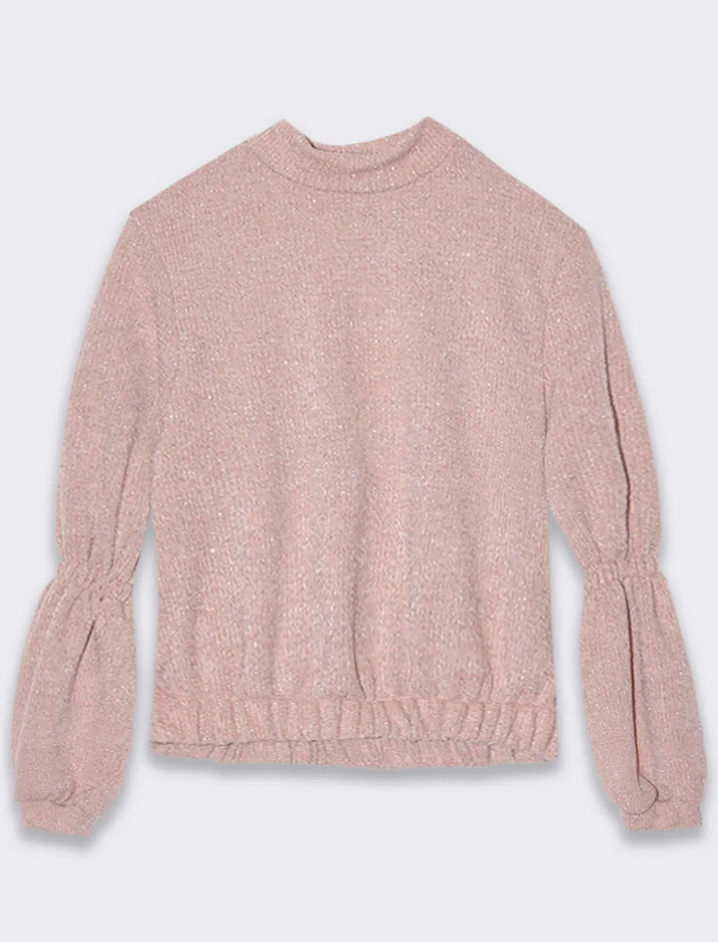 T-shirt da bambina in maglina con filo silver metallizzato.Elastico al fondo e sulle maniche, mezzo collo e vestibilità regular.Perfetta per un look glamour. Il prodotto è di colore Rosa