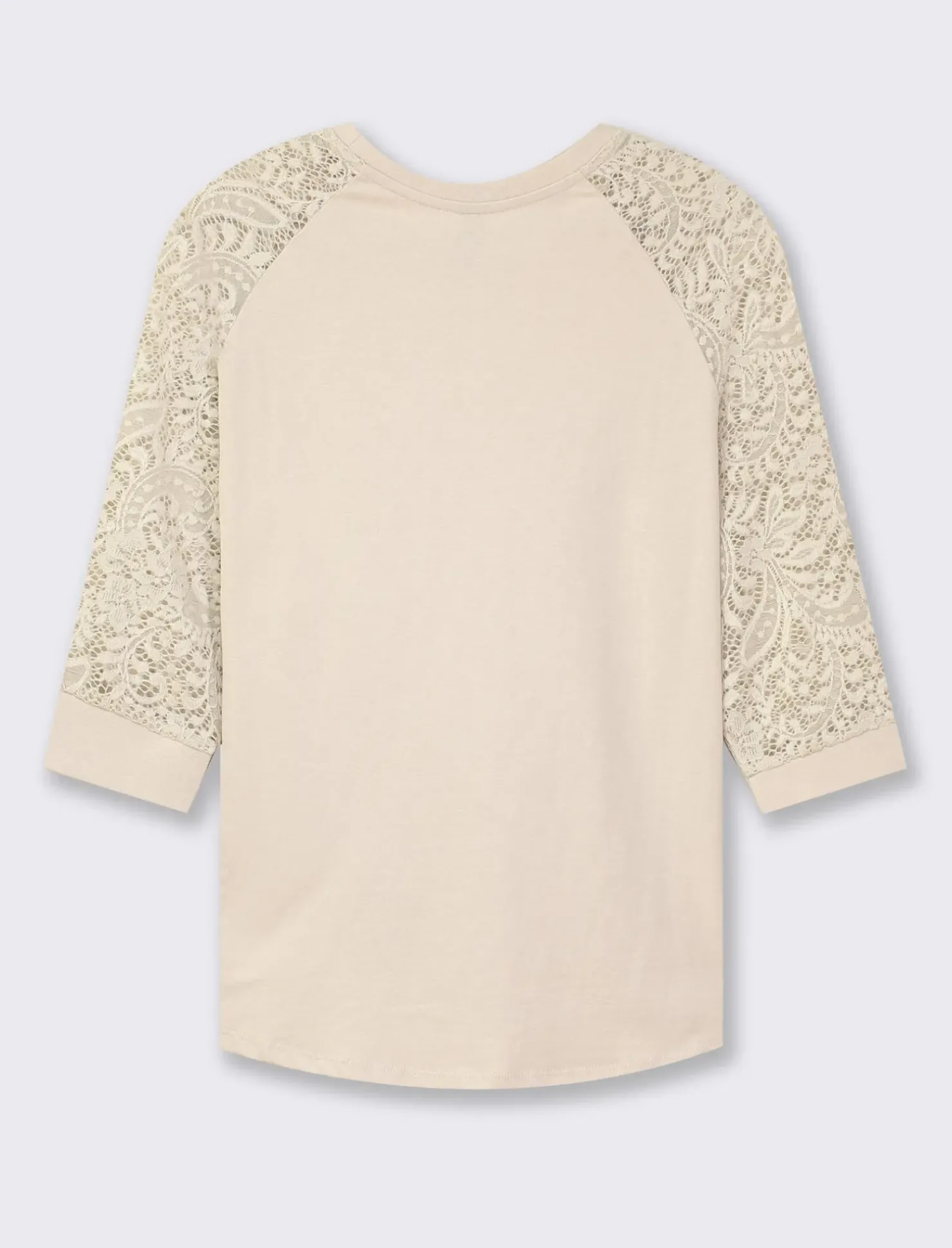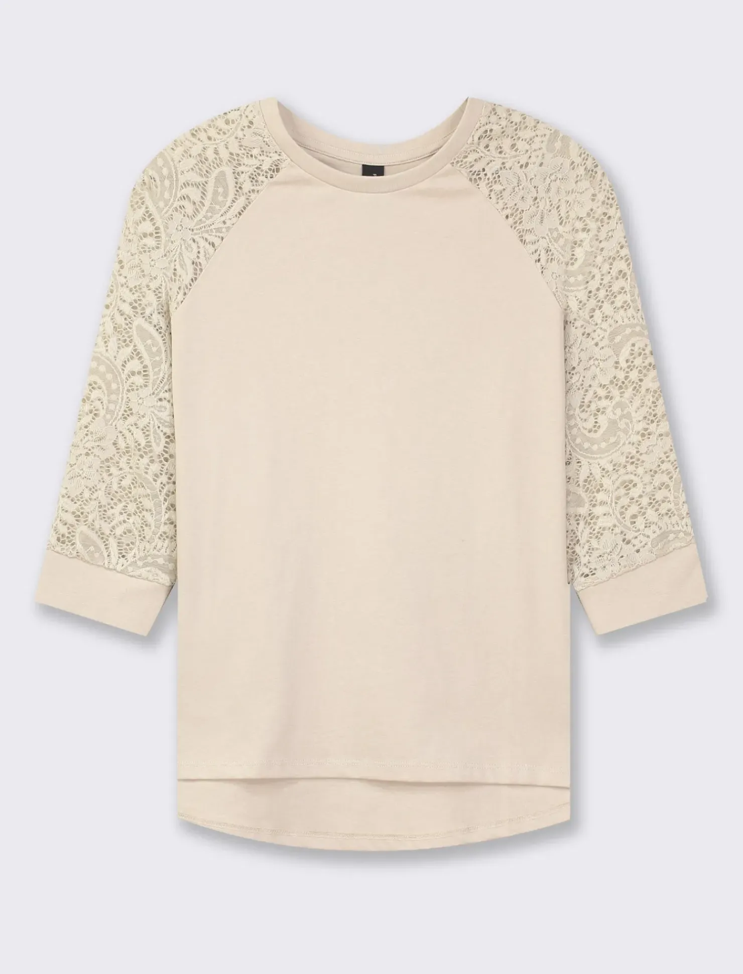 Piazza Italia T-shirt in pizzo con manica 3/4 e motivi floreali raglan – Sabbia Beige Flash Sale