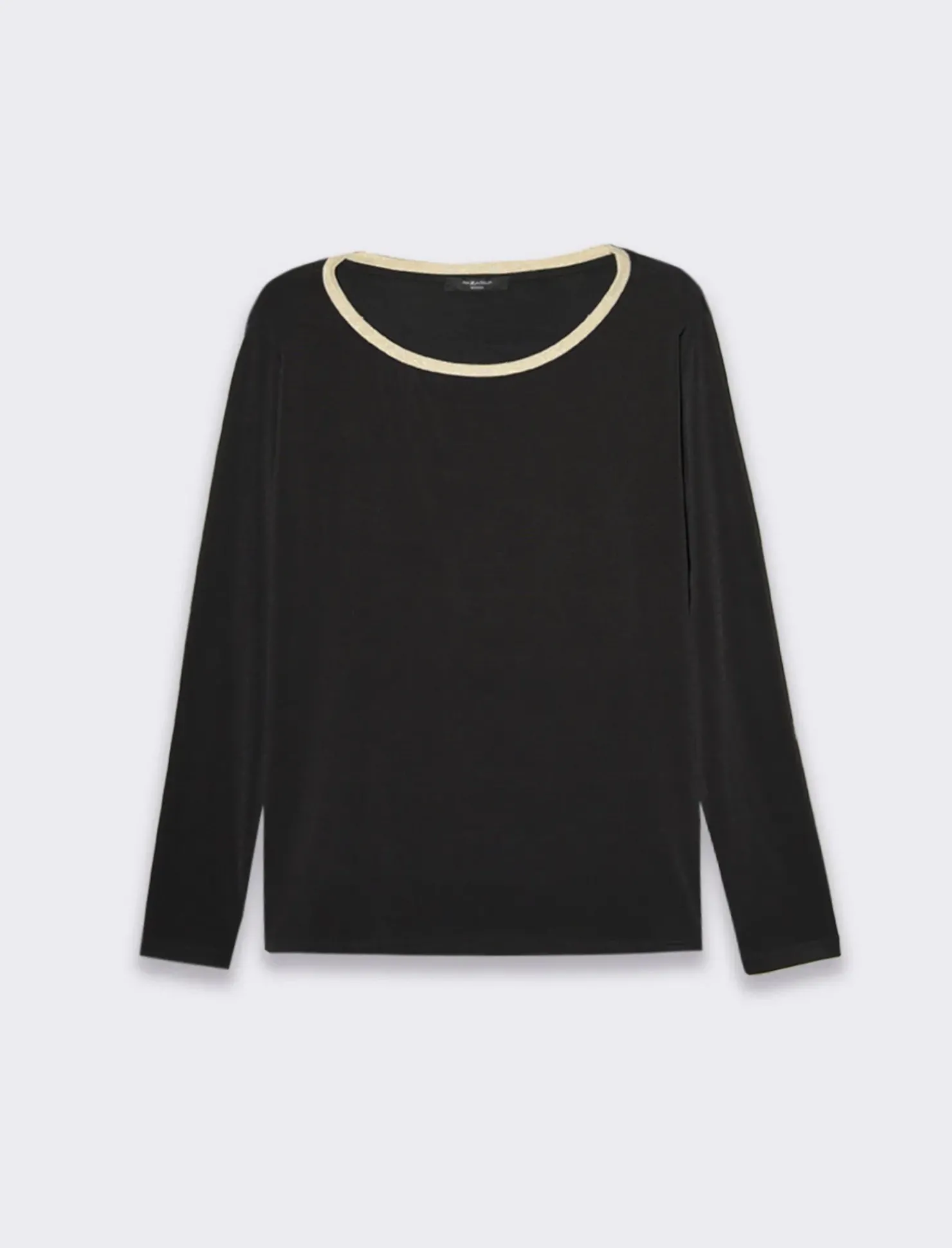 Piazza Italia T-shirt manica lunga, girocollo con bordo in filo effetto metallico – Nero Online