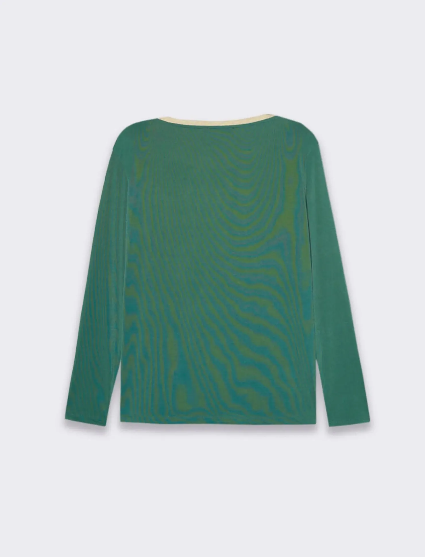 Piazza Italia T-shirt manica lunga, girocollo con bordo in filo effetto metallico – Verde Fashion