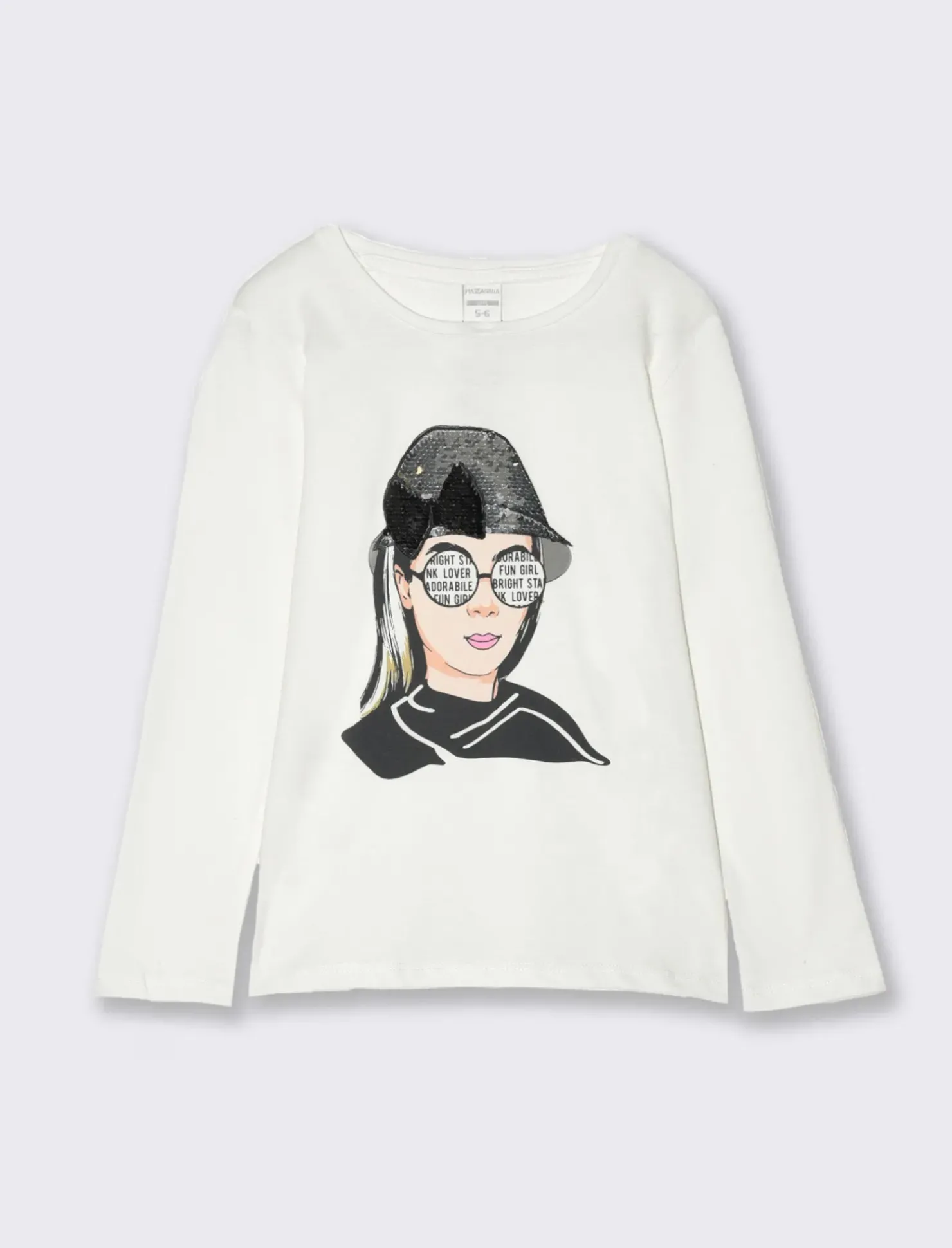 Piazza Italia T-shirt manica lunga in cotone con stampa e dettaglio paillettes – Bianco sporco Best Sale