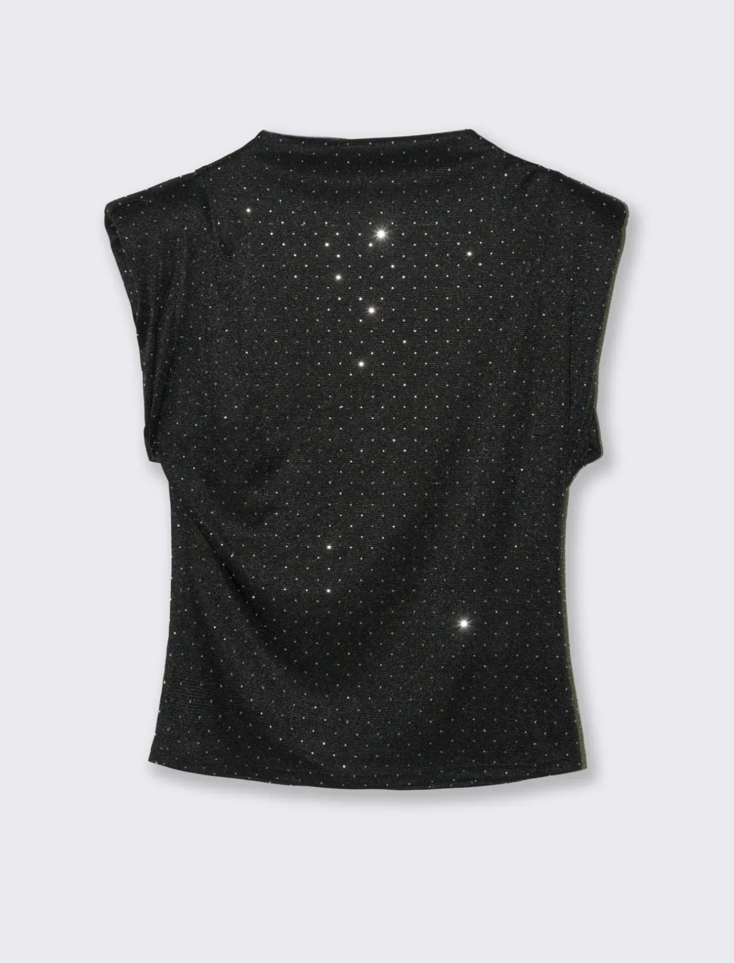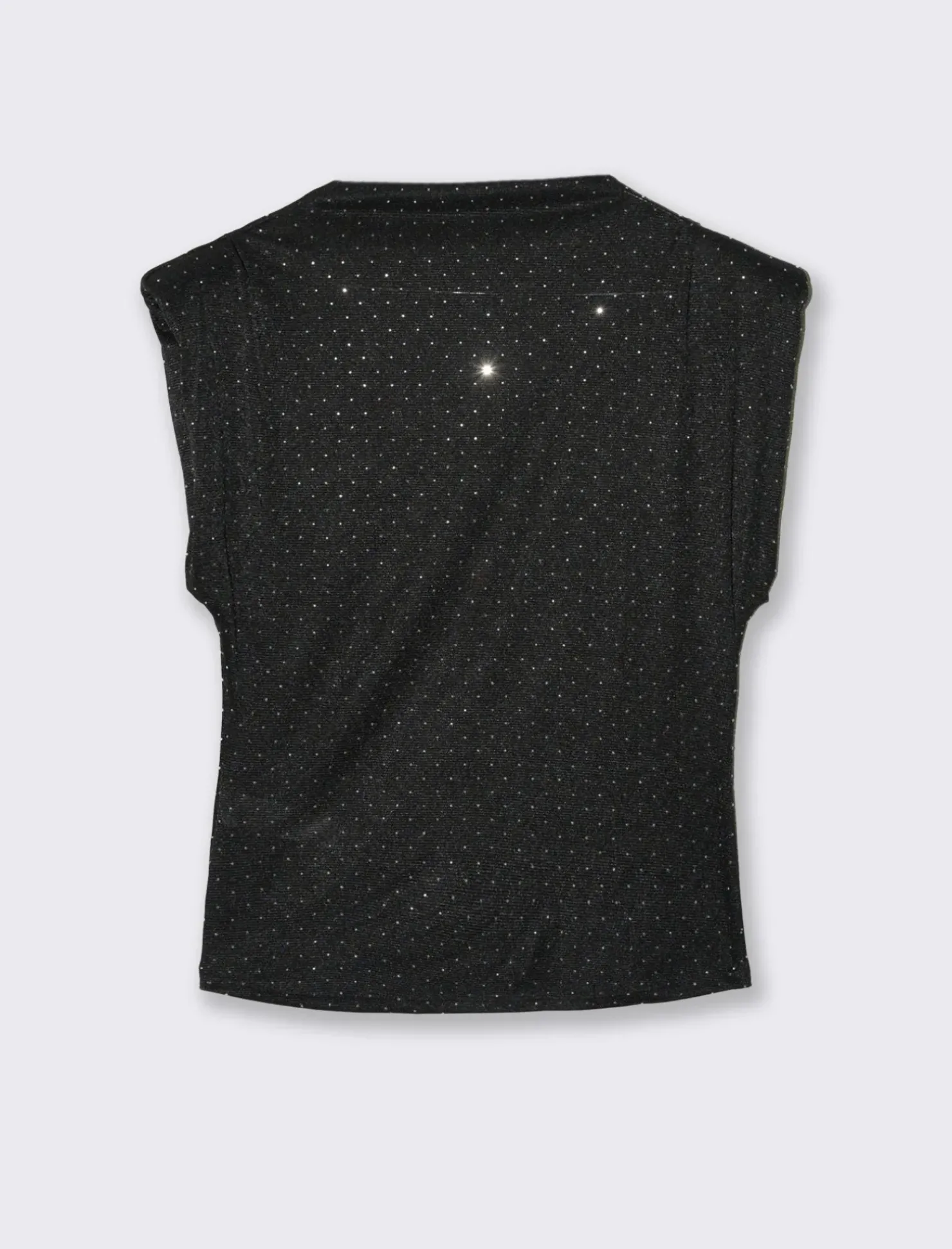 Shirt che combina eleganza e modernità , perfetta per chi desidera un look sofisticato ma con un tocco di originalità . Questa maglia è realizzata in un tessuto morbido e confortevole, che si adatta perfettamente alla silhouette senza risultare troppo aderente.Le maniche ad aletta imbottite sono il dettaglio distintivo di questo capo. Queste maniche, leggermente sollevate e strutturate, aggiungono volume e un tocco di drammaticità al design. La loro forma particolare crea un effetto visivo interessante, che attira l’attenzione sulle spalle e dona un’aria di eleganza contemporanea. Gli strass applicati sono distribuiti con cura lungo le maniche e, in alcuni casi, anche sul busto della maglia. Questi piccoli cristalli scintillanti catturano la luce ad ogni movimento, creando un effetto luminoso e glamour. Gli strass aggiungono un tocco di lusso e rendono la maglia ideale per occasioni speciali o serate fuori. Il prodotto è di colore Nero