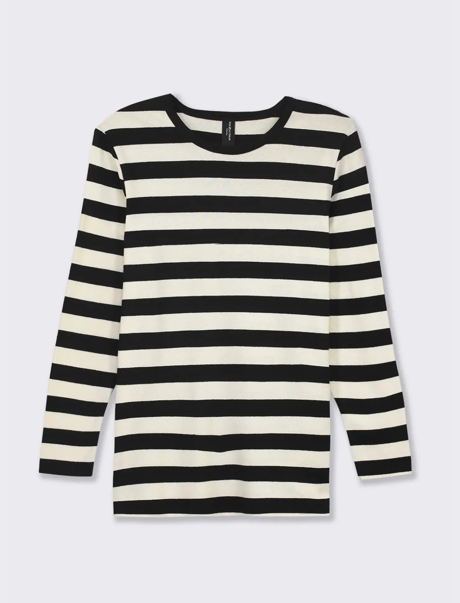 T-shirt slim fit girocollo da donna, perfetta per un look casual e alla moda. Realizzata in morbido tessuto, con maniche a tre quarti a righe tinto filo per un tocco di originalità. Ideale per completare ogni outfit con stile e comfort. Il prodotto è di colore var 1
