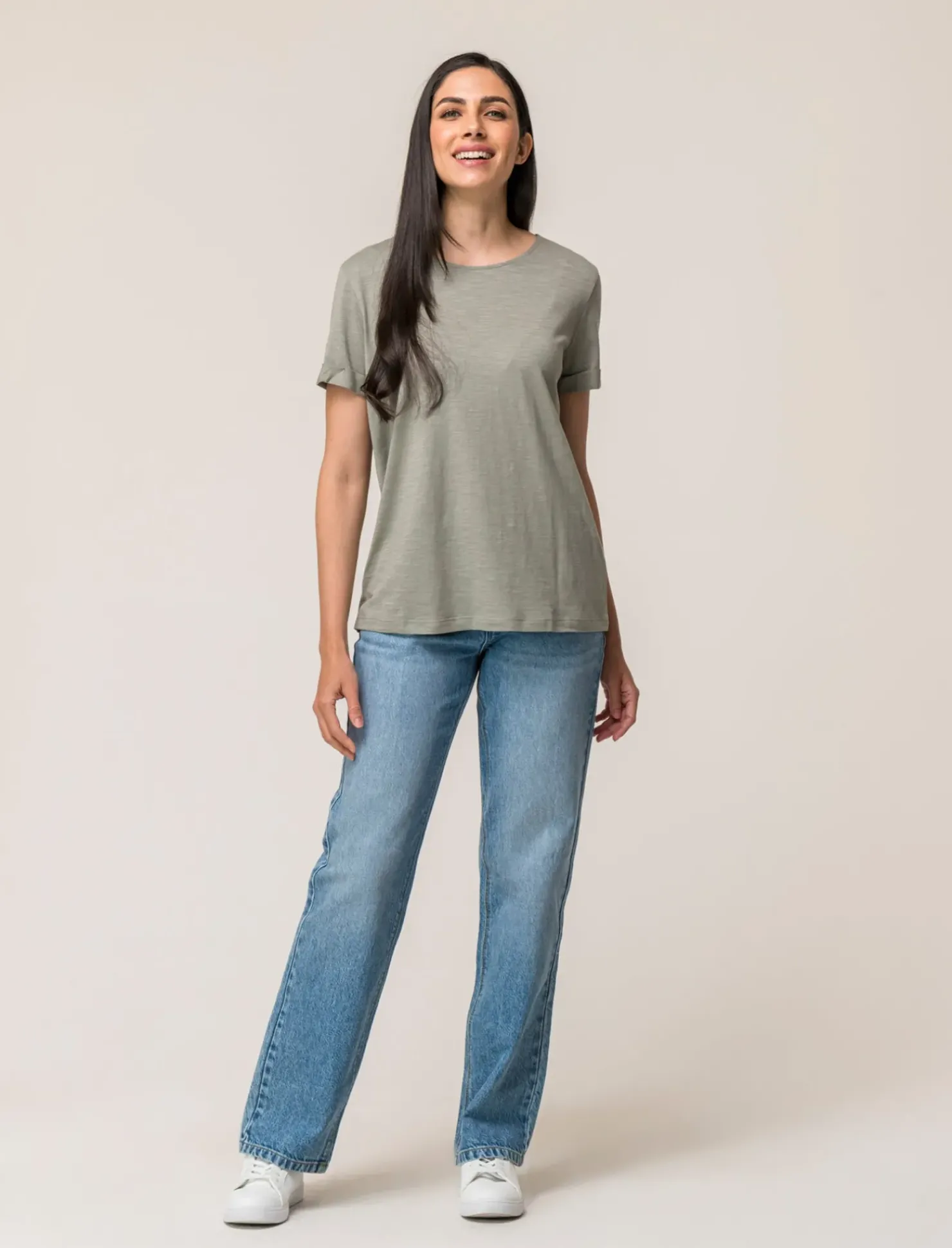 T-shirt mezza manica effetto slub donna in cotone modal, dal design moderno e casual. La vestibilità regular assicura comfort e praticità, perfetta per un look informale ma curato. Ideale per completare il tuo outfit estivo con stile e semplicità. Il prodotto è di colore Verdino