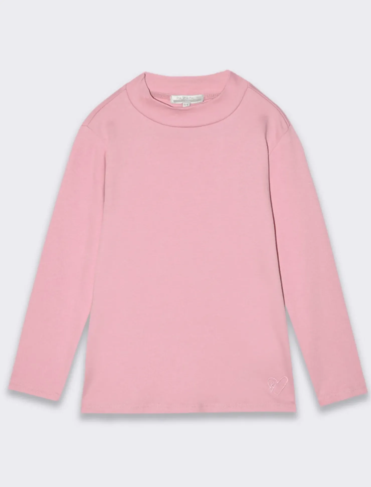 T-shirt con colletto morbido interlock da bambina con ricamo in tono Il prodotto è di colore Rosa