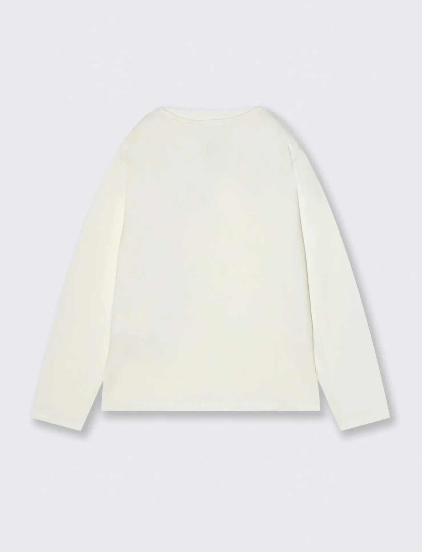 T-shirt girocollo da bambino in tinta unita mano pesca con stampa frontale. Ideale per tutti i giorni. Il prodotto è di colore Bianco sporco