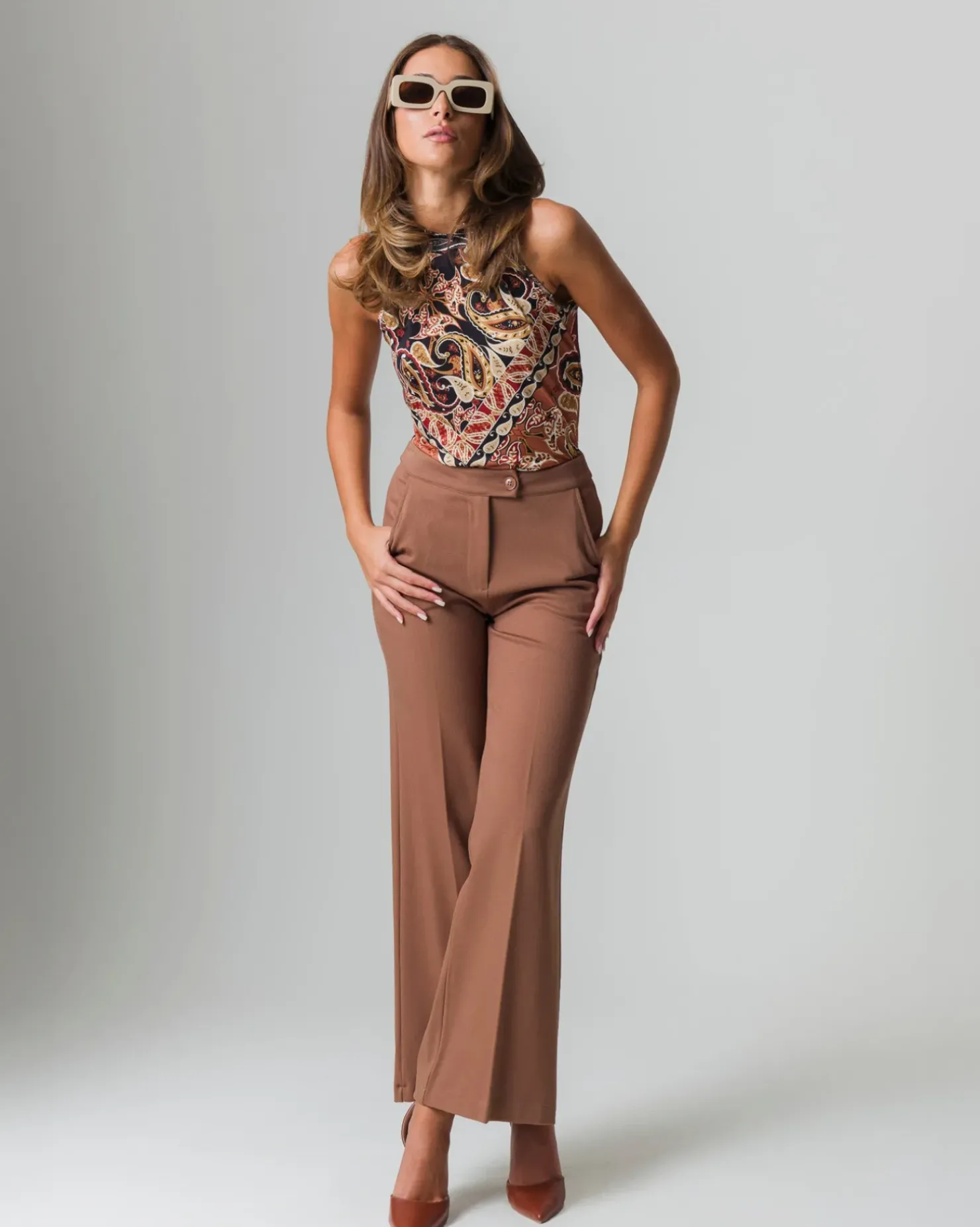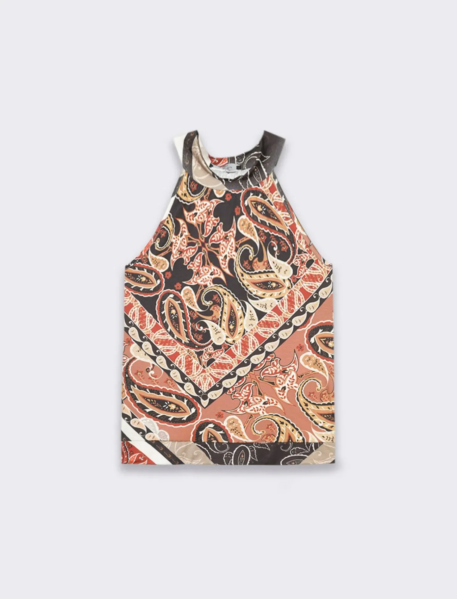 Top halter neck stampato, caratterizzato da un elegante girocollo e giromanica ampio, perfetto per chi desidera un look fresco e alla moda. La stampa vivace e i colori accattivanti rendono questo capo versatile, adatto sia per occasioni casual che per eventi più formali. La sua vestibilità comoda permette di muoversi liberamente, mentre il design moderno aggiunge un tocco di originalità al tuo guardaroba. Ideale per abbinamenti con jeans o gonne. Il prodotto è di colore Nero