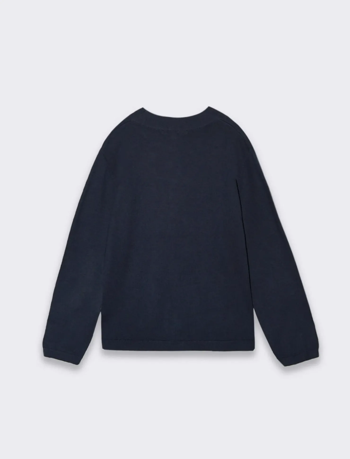 Tricot da bambino tinta unita modello dolce vita. Collo, fondo maniche e corpo in costina in tono. Modello casual , ideale per ogni occasione. Il prodotto è di colore Blu