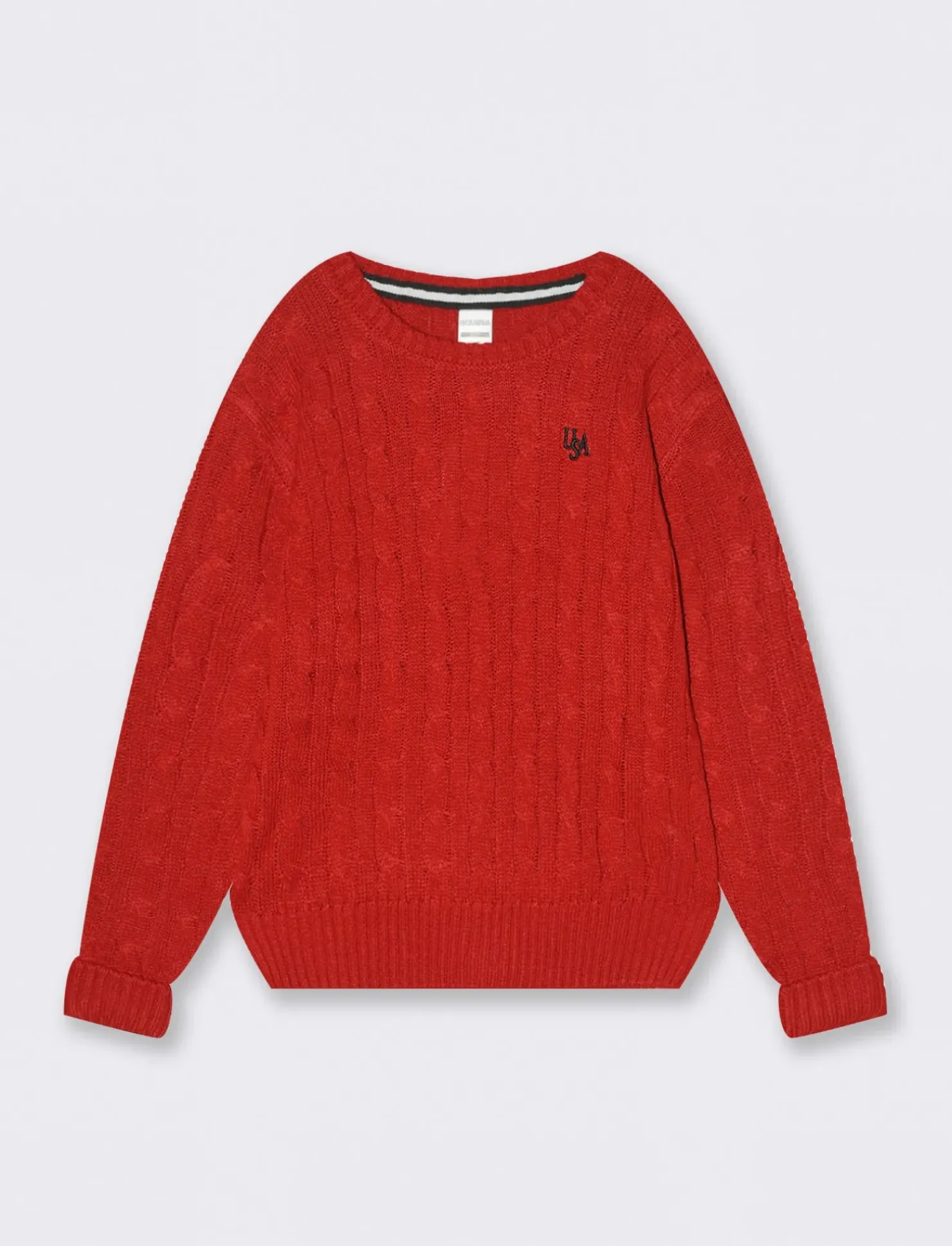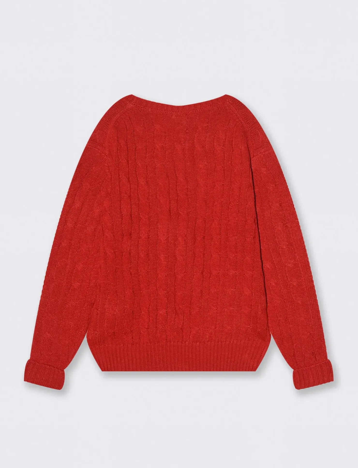 Tricot tinte unita lavorazione a terccia con ricamo frontale. Fondo manica e corpo in costina. Ideale per il tempo libero. Il prodotto è di colore Rosso