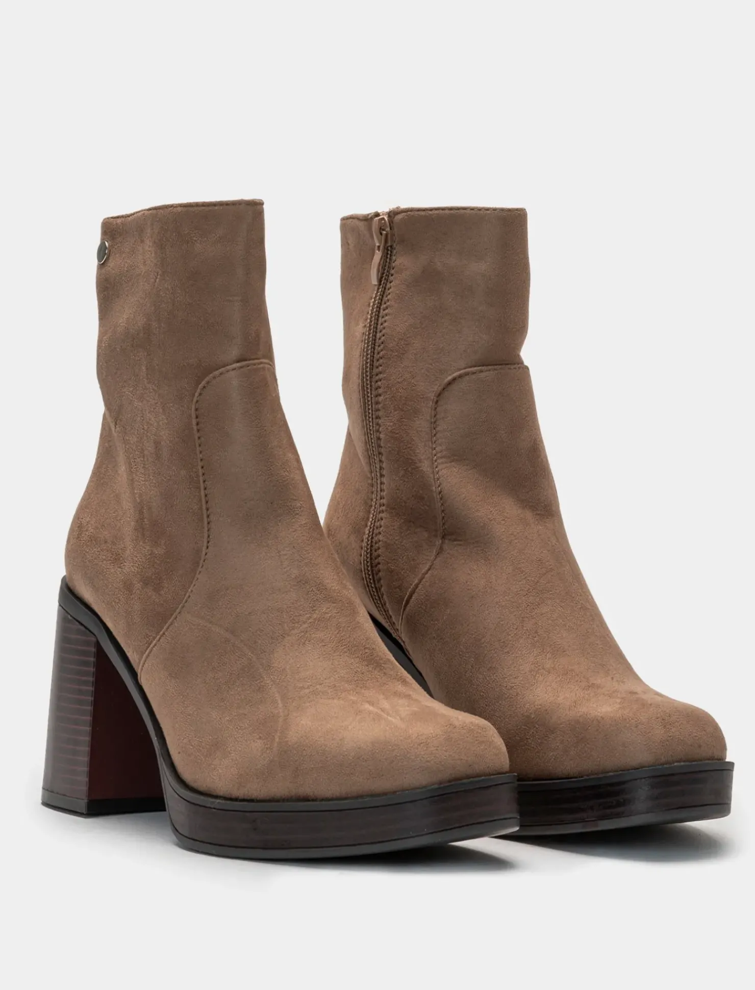 Piazza Italia Tronchetto in microfibra con punta quadrata e tacco effetto legno – tortora Grigio Clearance
