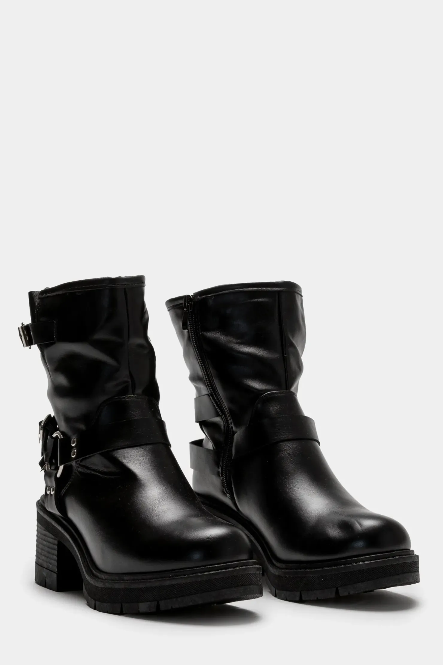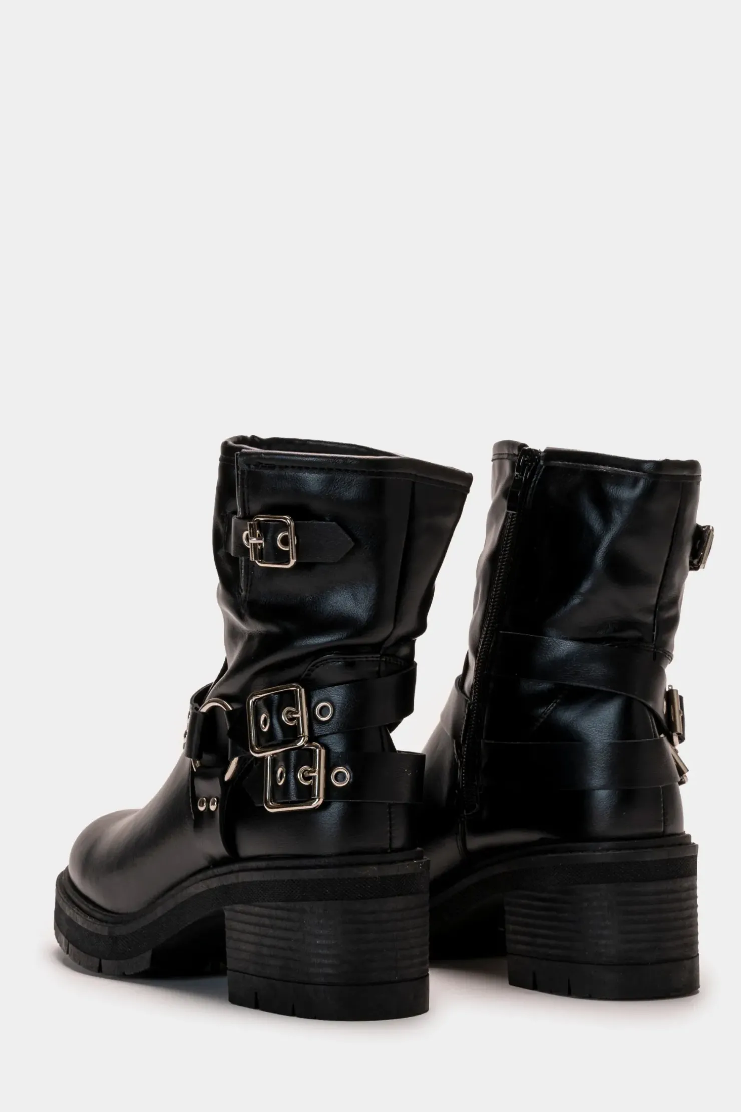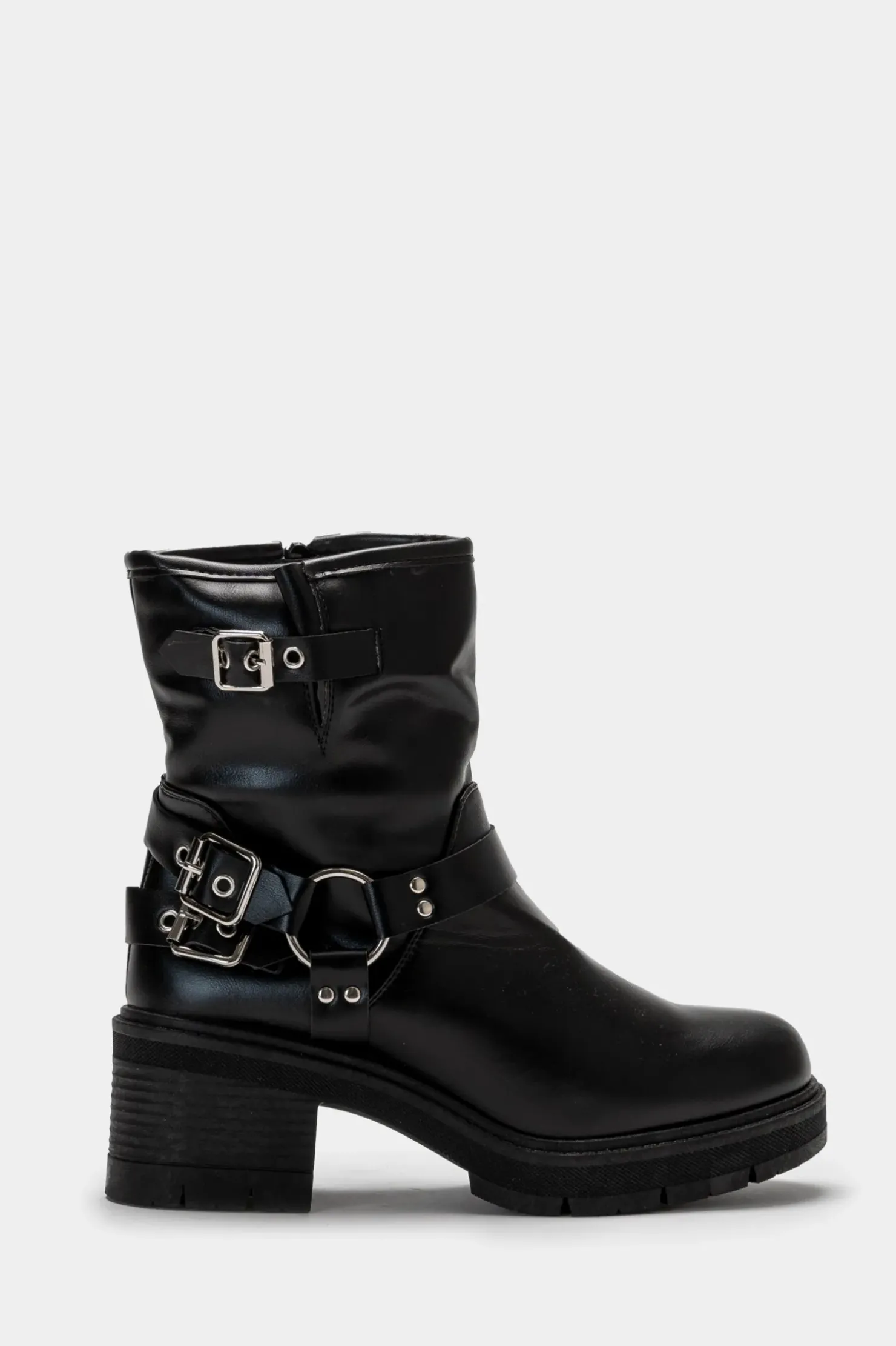 Piazza Italia Tronchetto stile biker con fibbia e dettagli metallici. – Nero Online