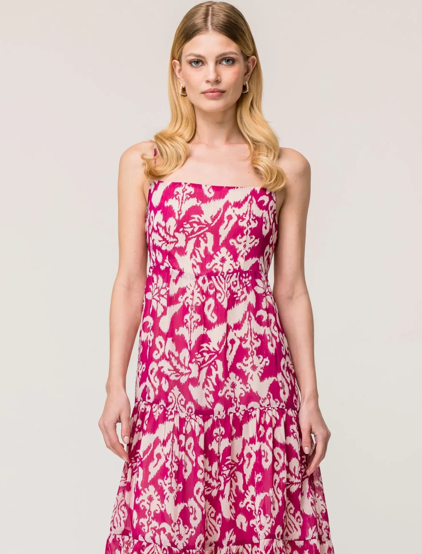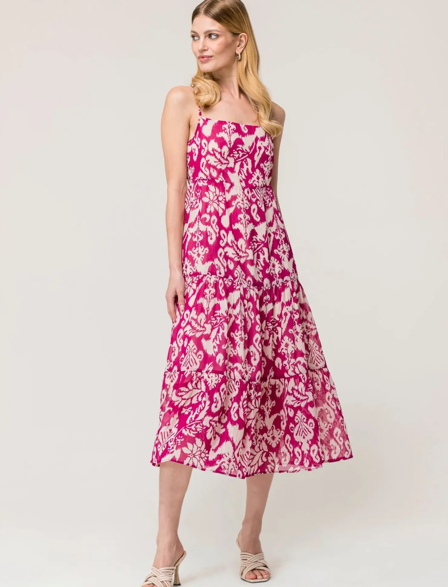 Vestito a bretelle effetto metallizzato per donna, realizzato in tessuto leggero e confortevole. L’inserto metallizzato conferisce un tocco di luminosità e originalità al capo, disponibile in diverse fantasie e colori. Ideale per un look elegante e alla moda, perfetto per occasioni speciali o serate fuori. Un capo versatile e di tendenza, che non passa inosservato. Il prodotto è di colore var 2