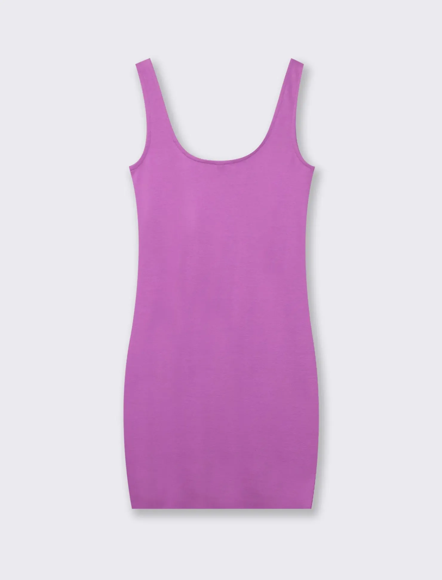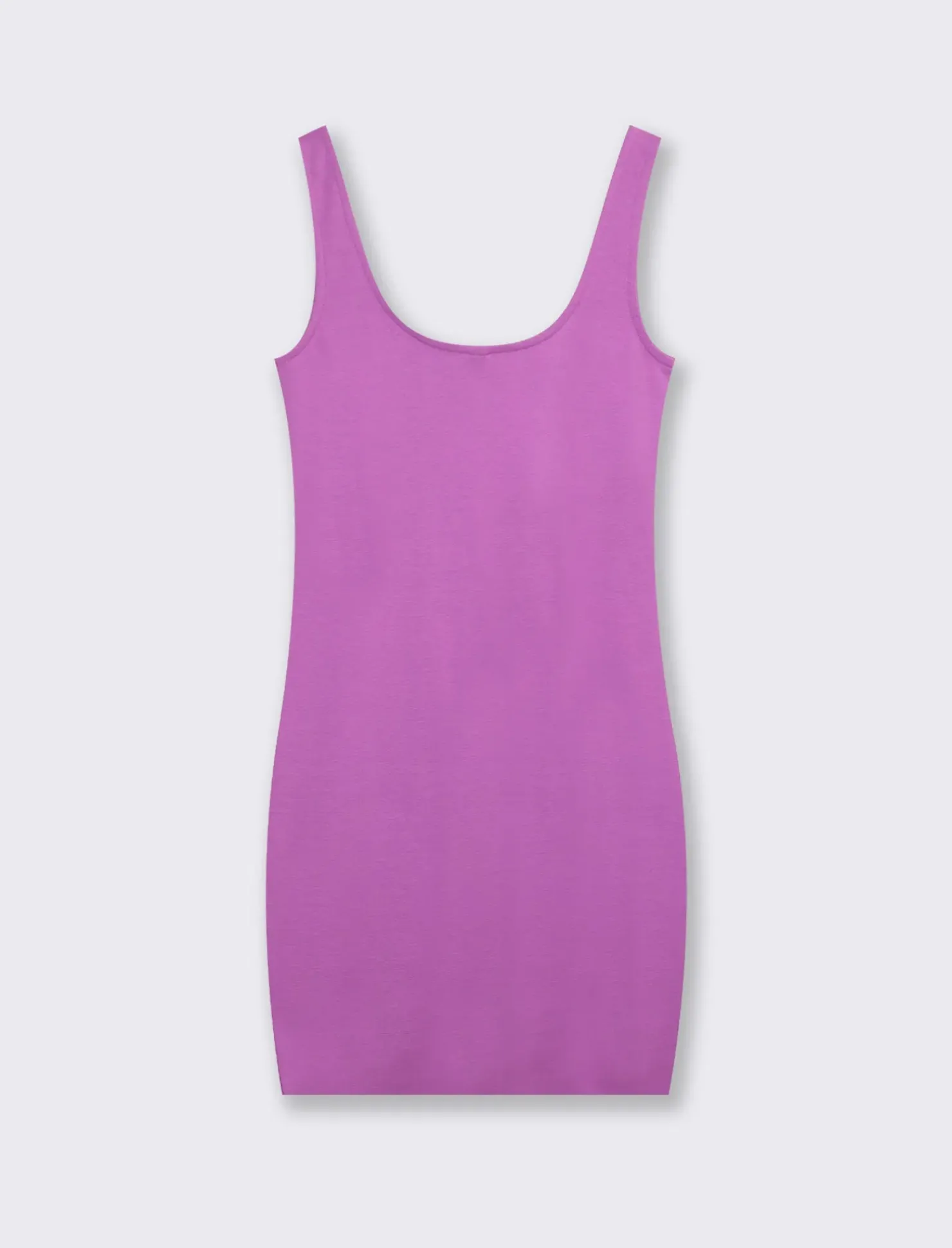 Piazza Italia Vestito corto in tessuto elatico con spalline e scollo rettangolare – Viola Discount