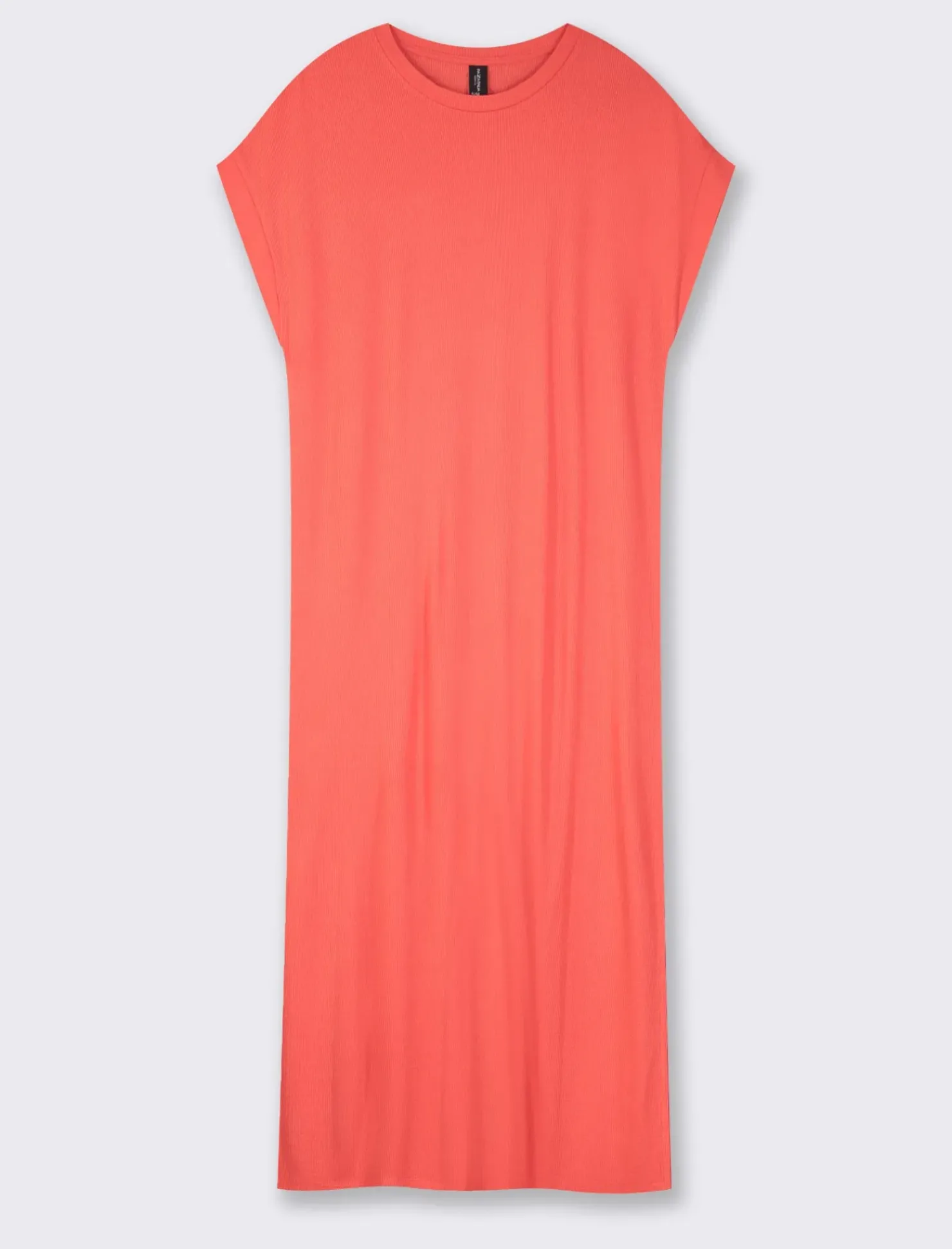 Piazza Italia Vestito in viscosa a coste, girocollo, manica a T con spacchi laterali al fondo – Corallo Arancione Outlet