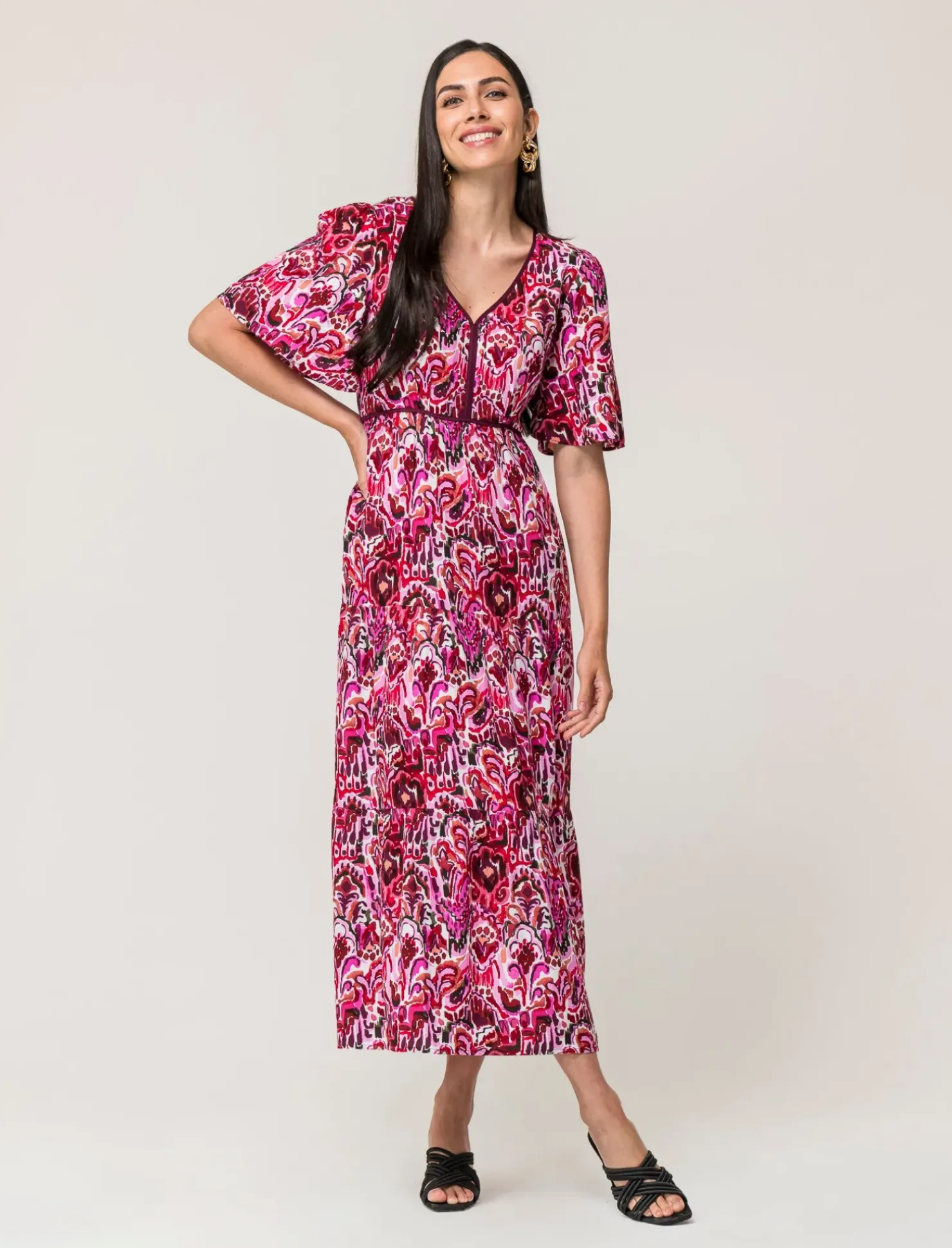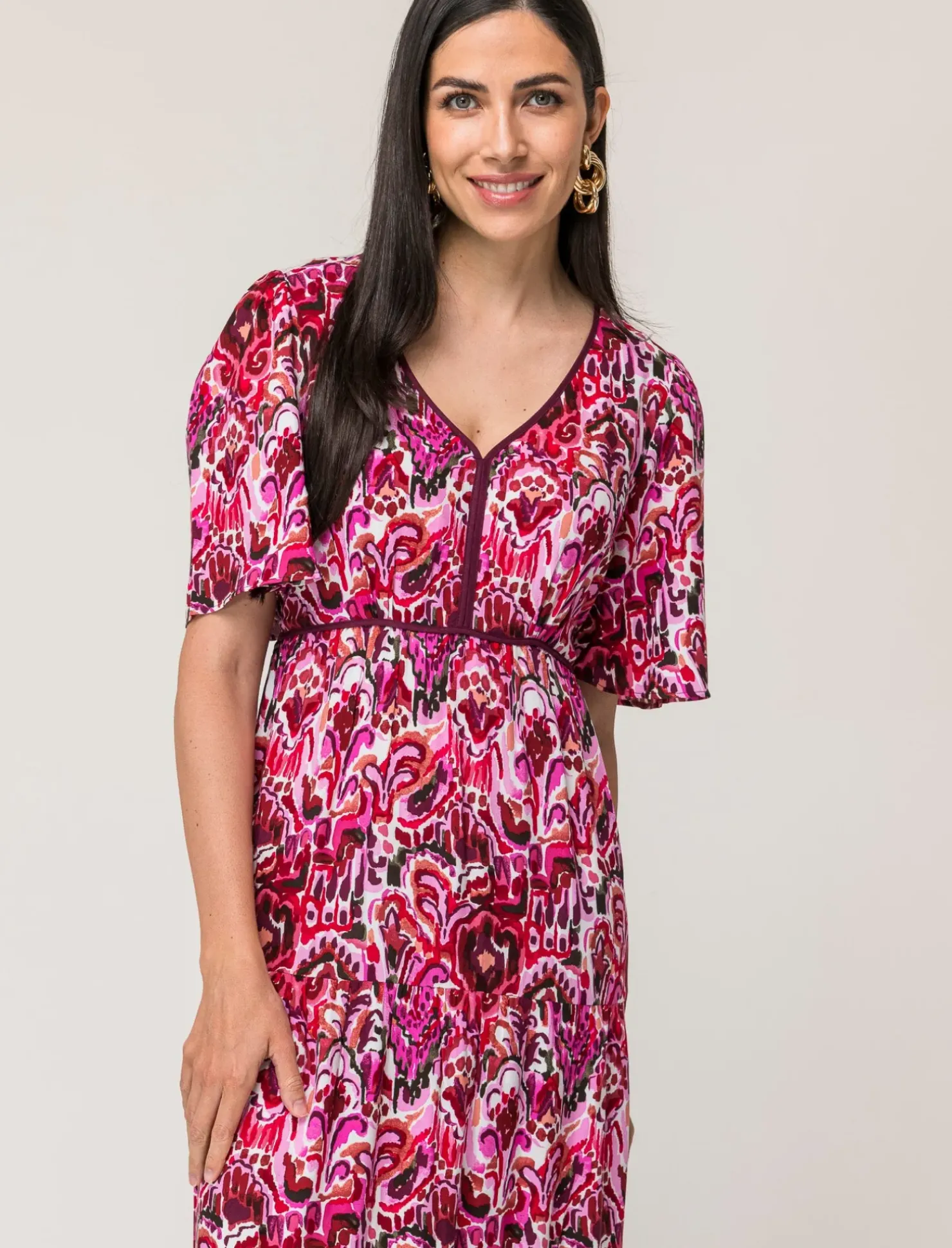 Vestito lungo regular donna realizzato in morbida viscosa, perfetto per un look elegante e confortevole. La vestibilità regular e le maniche ampie lo rendono adatto a ogni occasione. Disponibile in diverse fantasie stampate, con dettagli bordati sullo scollo e in vita. Un capo versatile e di tendenza, ideale per valorizzare la femminilità in ogni momento della giornata. Il prodotto è di colore var 2