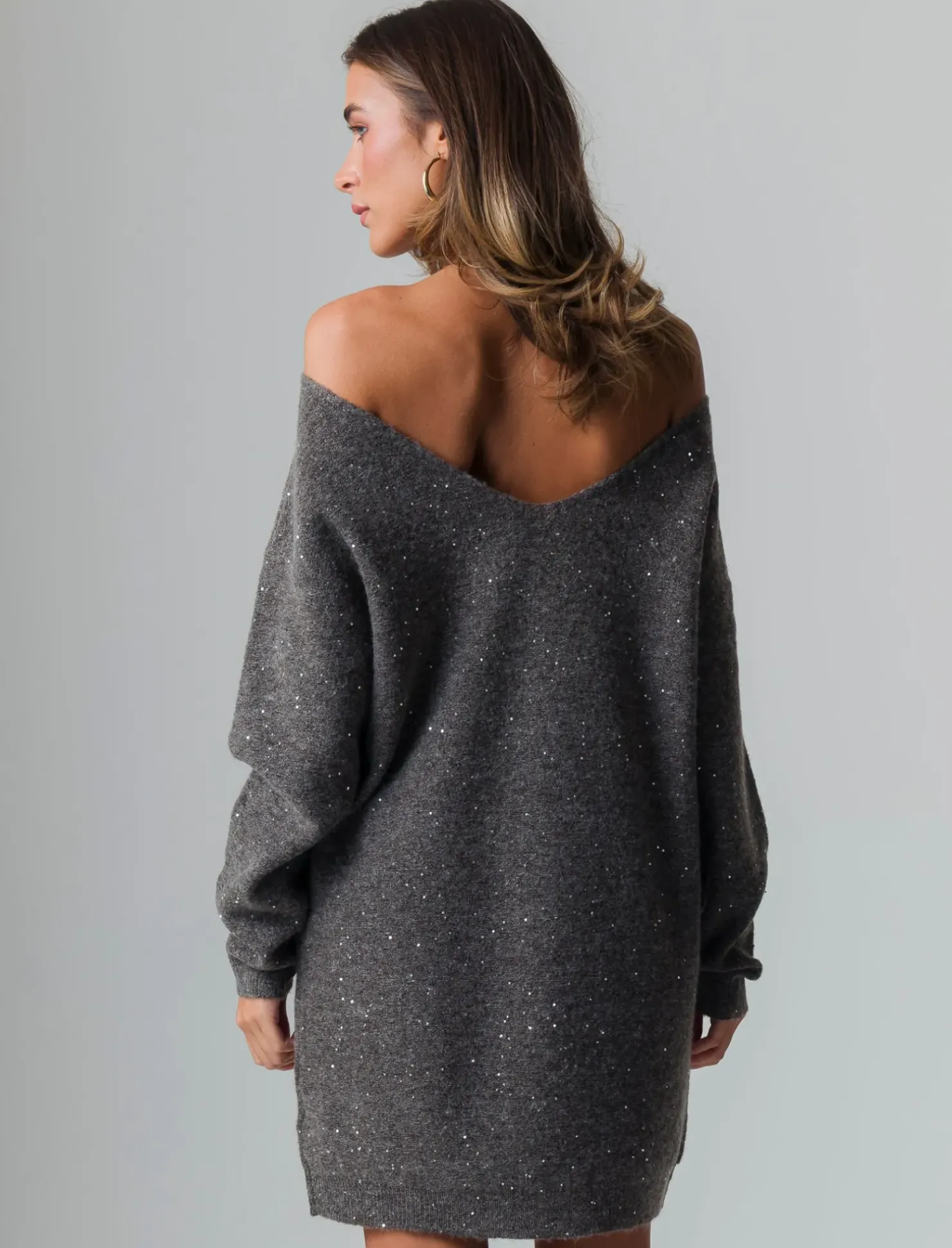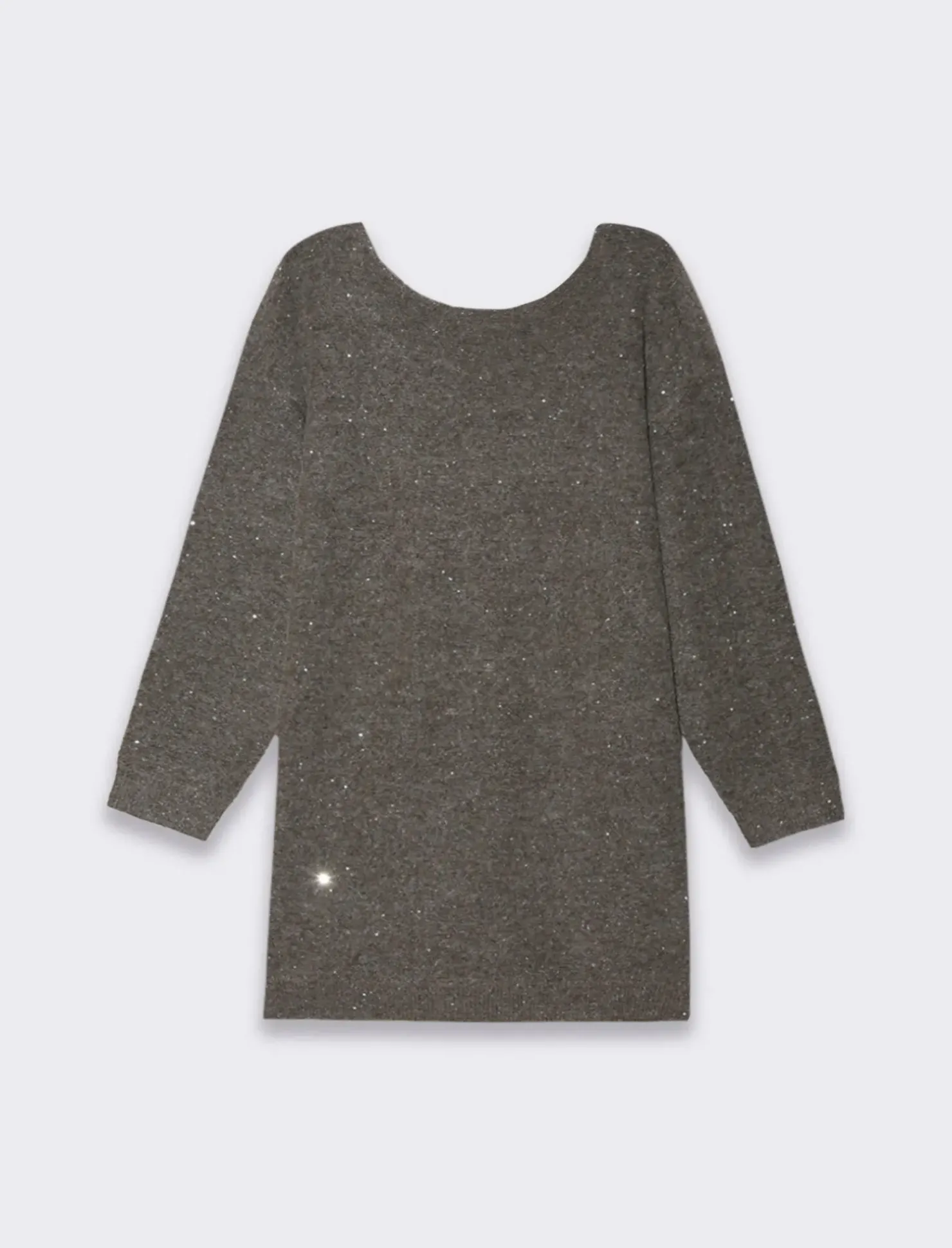 Piazza Italia Vestito maxipullover con filato di pailletes scollatura a V profonda sulla schiena – melange Grigio Store