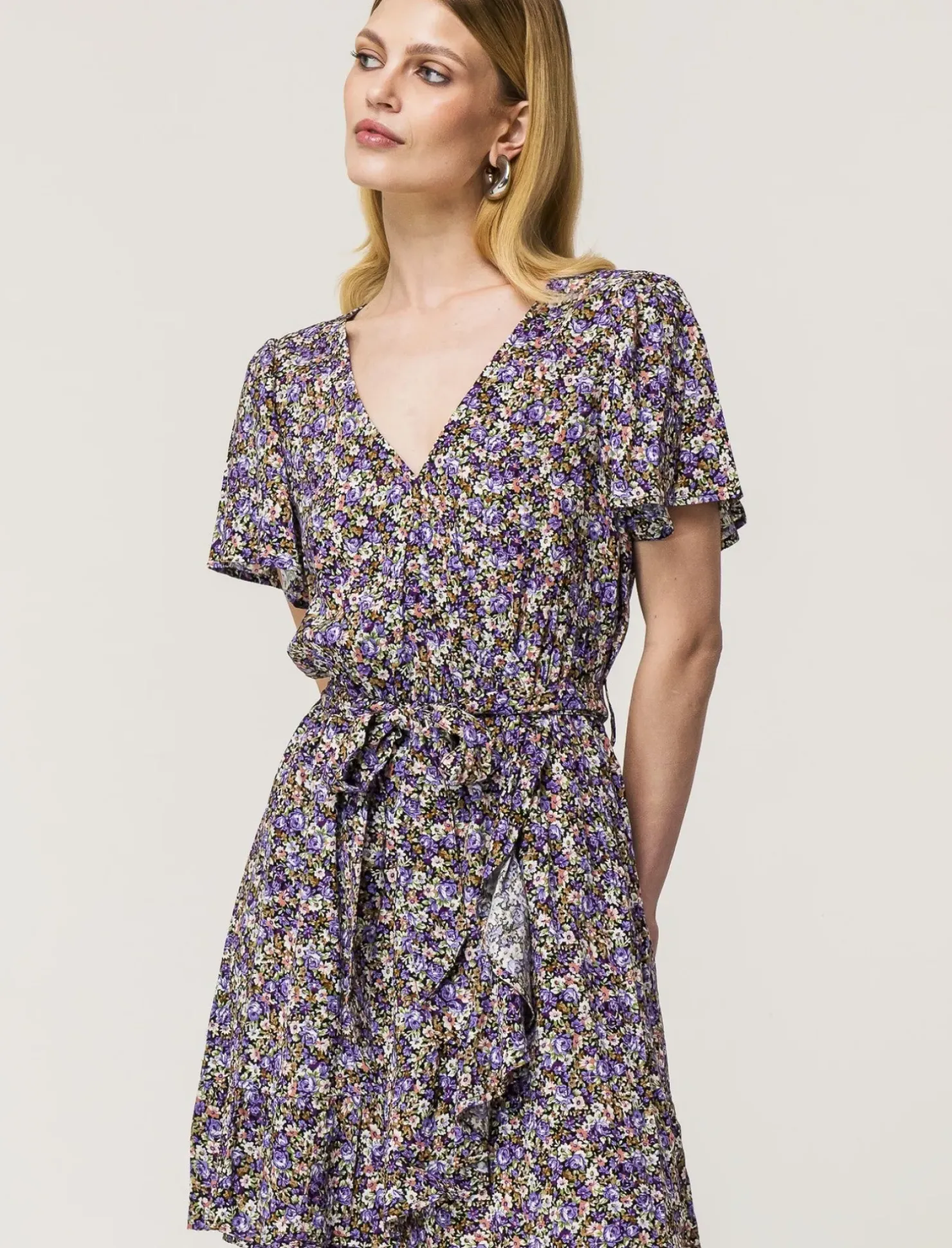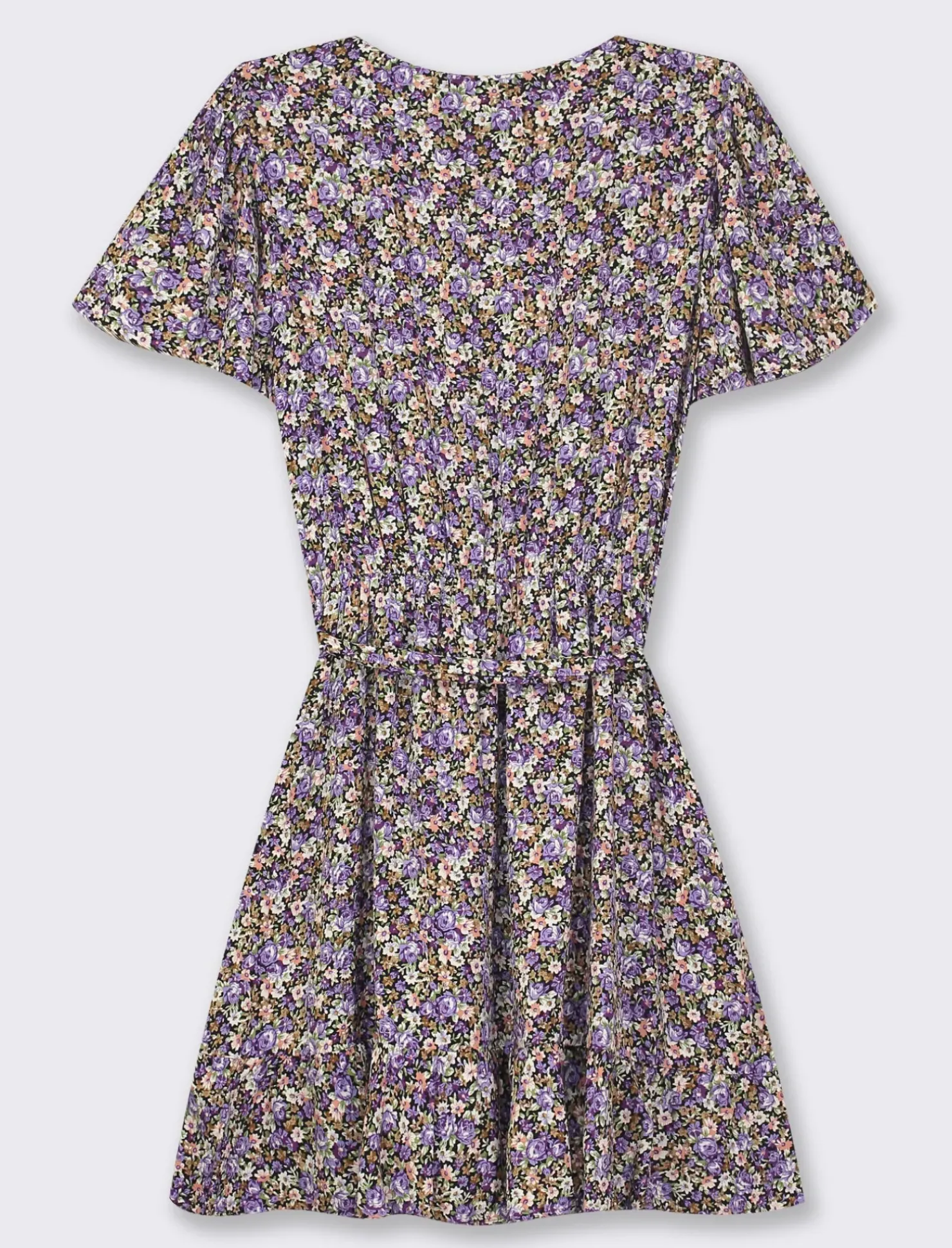 Vestito mini in viscosa stampato con rouches sul fondo e sulle maniche, perfetto per un look femminile e romantico. La fusciacca in tessuto in vita aggiunge un tocco di eleganza e femminilità. Ideale per un’occasione speciale o una serata fuori con le amiche. Sentiti sicura e alla moda con questo abito unico nel suo genere. Il prodotto è di colore var 2