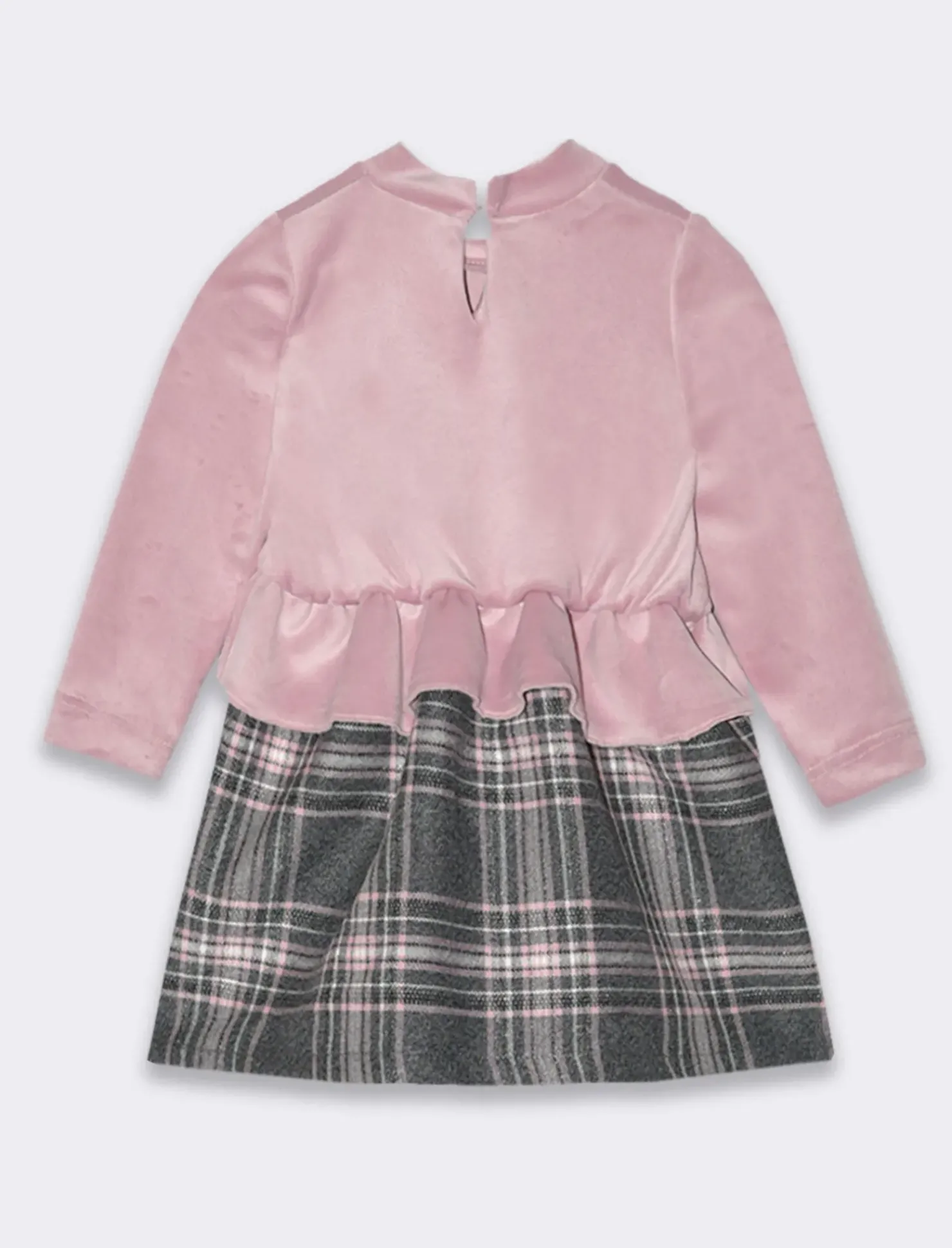 Abito combinato in ciniglia e tessuto scozzese. Fiocco laterale applicato. Vita elastica e abbottonatura a goccia sul dietro.Morbido e soffice al tatto renderà il look della tua bambina glamour senza rinunciare al comfort. Il prodotto è di colore Fantasia